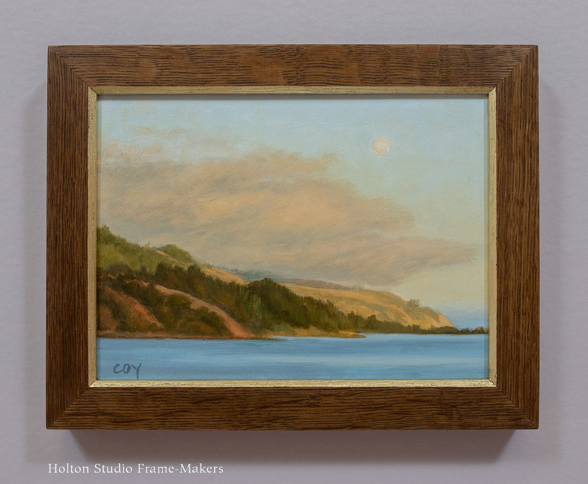 Framed in a No. 1.6—1″ with 18kt gilt sight edge. Fumed quartersawn white oak with clear oil finish. (Inquire for other frame options).