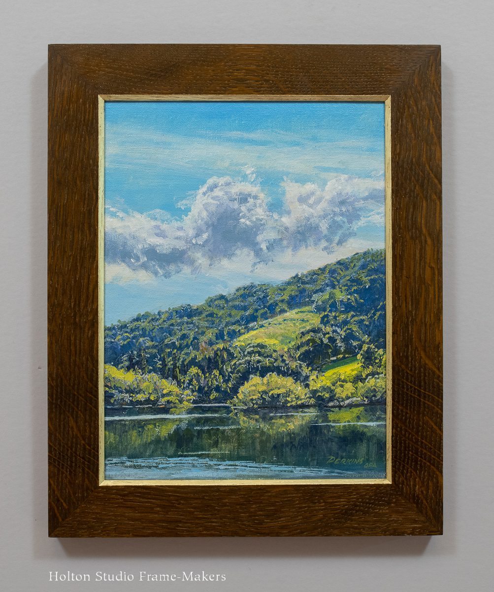 Framed in a No. 1.6—1 3/4″ with 18kt gilt sight edge. Quartersawn white oak with Medieval stain. (Inquire for other frame options).