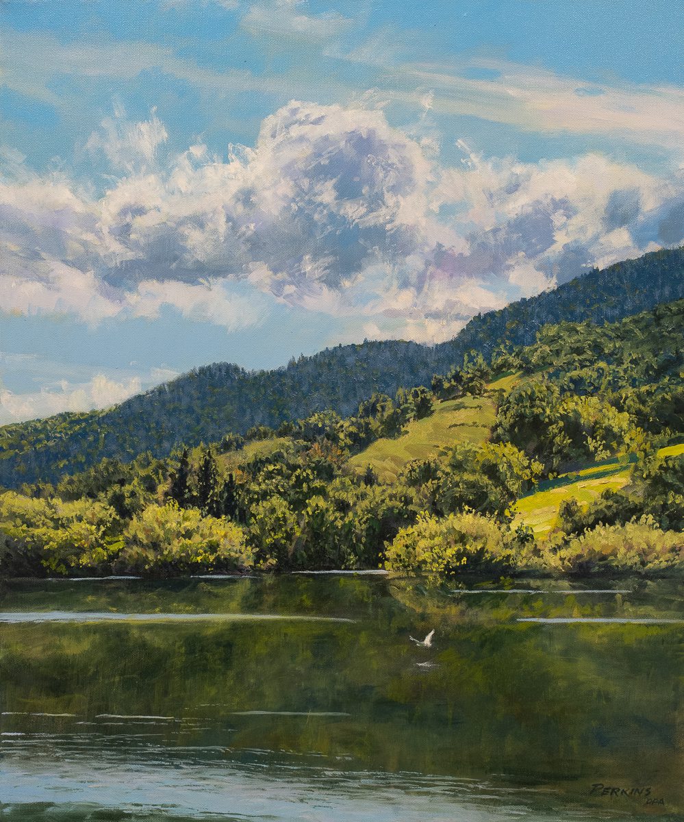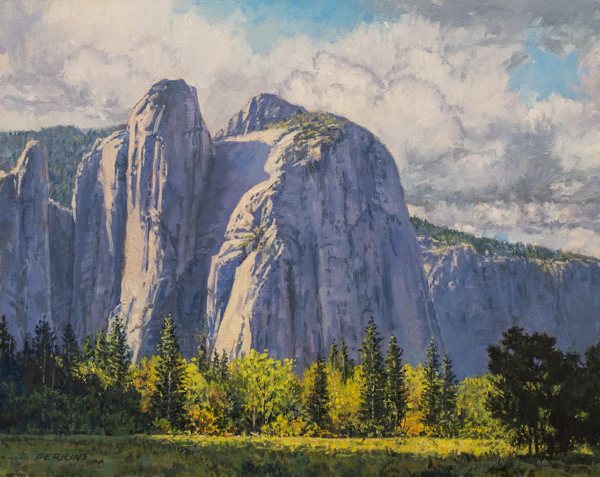 Davis Perkins is a California landscape painter with an unusual background. He has had a long career as a smokejumper, firefighter, paramedic, as well as professional artist. After serving as a paratroop sergeant (first with the Army’s 82nd Airborne Division, and later with the 12th Special Forces Group of the Army Reserve), Davis worked 13 summers as a smokejumper, parachuting into forest fires with the U.S. Forest Service and Bureau of Land Management. During the winter he attended art school, graduating from the University of Oregon with a degree in fine arts. His early work was featured in solo exhibitions at the Alaskan State Museum and the Smithsonian Institution Air & Space Museum; both museums selected his work for their permanent collections. In addition, he has a painting in the Pentagon with the United States Air Force Art Collection as well as in the collections of several other public institutions. Davis exhibits his work in galleries and other art venues in Northern California, while continuing his life of travel and public service. In 2007 he climbed Mt. Kilimanjaro, and created paintings from his view at the summit. He remains active as a paramedic, and as a member of the Disaster Medical Assistance Team of the Department of Health and Human Services. Since 2010 Davis has served on medical relief missions to Haiti, Ethiopia, Cambodia, Liberia (Ebola outbreak), Vanuatu, Nepal, Lesvos, Greece to aid with the refugee crisis, and Mosul, Iraq, working with trauma patients in the current conflict.