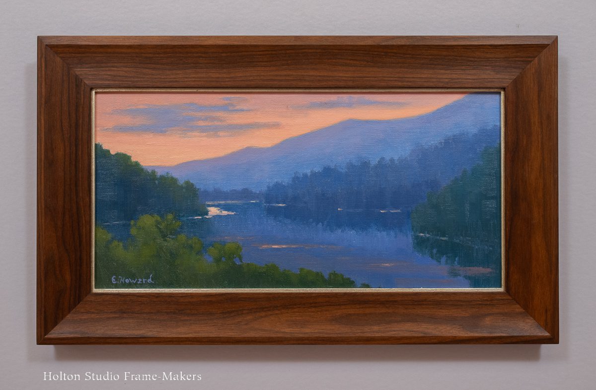 Framed in a No. 1.6—1 1/2″ with silver waxed sight edge. Walnut with Silver Gray stain. (Inquire for other frame options).