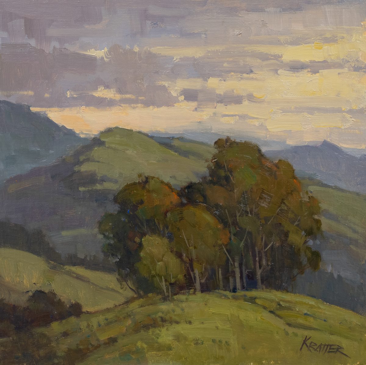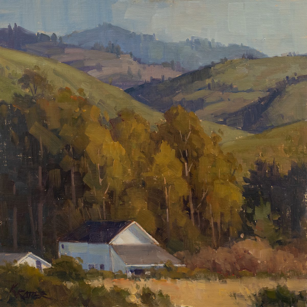 Holton Studio Frame-Makers has been representing East Bay painter Paul Kratter since 2003, gathering an enthusiastic following for his scenes of the state of California, from the Sierras to the seashore. Paul is a highly accomplished artist and instructor who has won numerous awards at Plein Air events across the country. A graduate of the Art Center College of Design in Pasadena, after 22 years working as an illustrator and publishing several books, he now paints full time and teaches plein air workshops. He has also taught at the San Francisco Art Institute, and Pixar Animation Studios (where his wife Tia Kratter worked for many years in design, animation and as a teacher). Much loved by fellow painters as well as collectors, since 2005, Paul has led the Granite Group on an annual summer painting trip into the High Sierras. The humility and joy that Paul carries with him, along with his brushes, paints and panels, out into the mountains, hills, and to the seashore is directly reflected in the work he produces there. With an eye for color and form, his forthright use of paint and astonishing rendering skills allow him to capture the Northern California landscape with a direct and confident touch earned through long familiarity and devotion to the land and its light. Paul has been featured in several shows at the Gallery, including the Spring 2017 exhibit, “Paul Kratter and Terry Miura: A Language of the Land.” In spring, 2023 the gallery held a one-man show, Paul Kratter: View Through The Trees, celebrating our twenty year relationship with Paul.