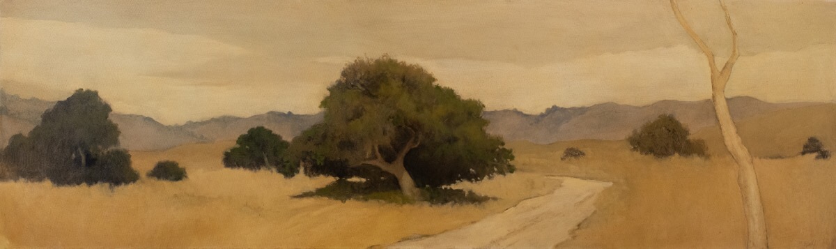 As a longtime admirer of Arthur Mathews and other tonalists, I responded immediately to Paul Roehl’s landscapes and palette and am thrilled to have his work in the Gallery. Paul (his last name is pronounced rail) lives in Santa Cruz, having been raised in California, primarily in the South Bay Area. Though his primary interest is in contemporary non-objective or abstract imagery, he enjoys sketching plein-air and accurately recreating the techniques and style of late 19th and early 20th century landscape painters. He also turns to earlier Barbizon school painters for inspiration, as well as American tonalist painters, citing especially the subtle and fresh visual poetry of George Inness and William Keith.