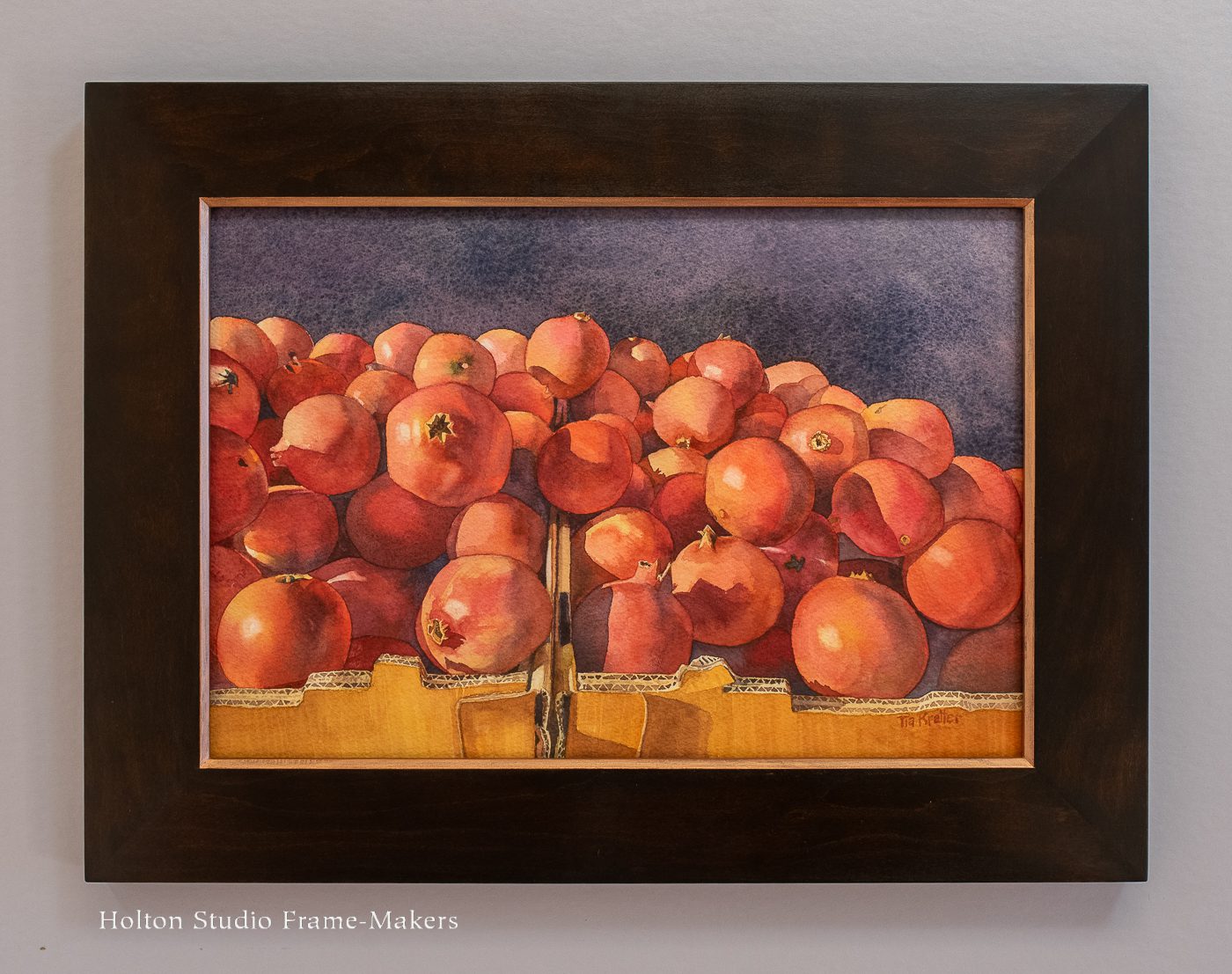 Framed in a No. 22—2″ with pewter waxed sight edge. Cherry with Deep Red Brown stain. (Inquire for other frame options).
