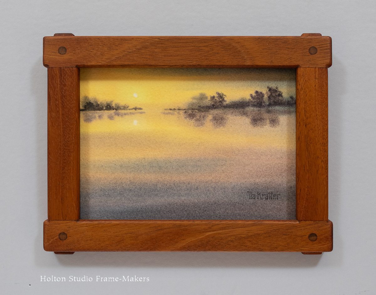 Framed in a No. 4001—1″ in mahogany with clear oil finish.