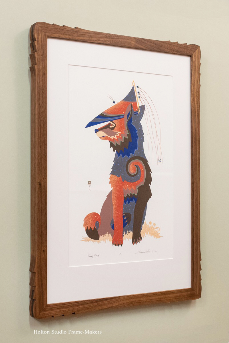 These three frames of ours, all made by Eric Johnson, are all in the same Compound Mitered profile No. 318 + Cap 811 at 3-1/4″ wide in quartersawn white oak with Dark Medieval Oak stain, with a gilt slip.