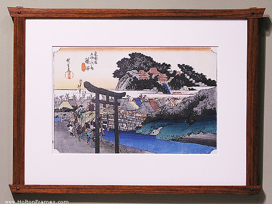 At right is a mahogany Oban size (21″ x 15″) Flaired Yoshida. It’s one of four ready-made Oban size frames, in four different woods, available from our new online store, shop.holtonframes.com.