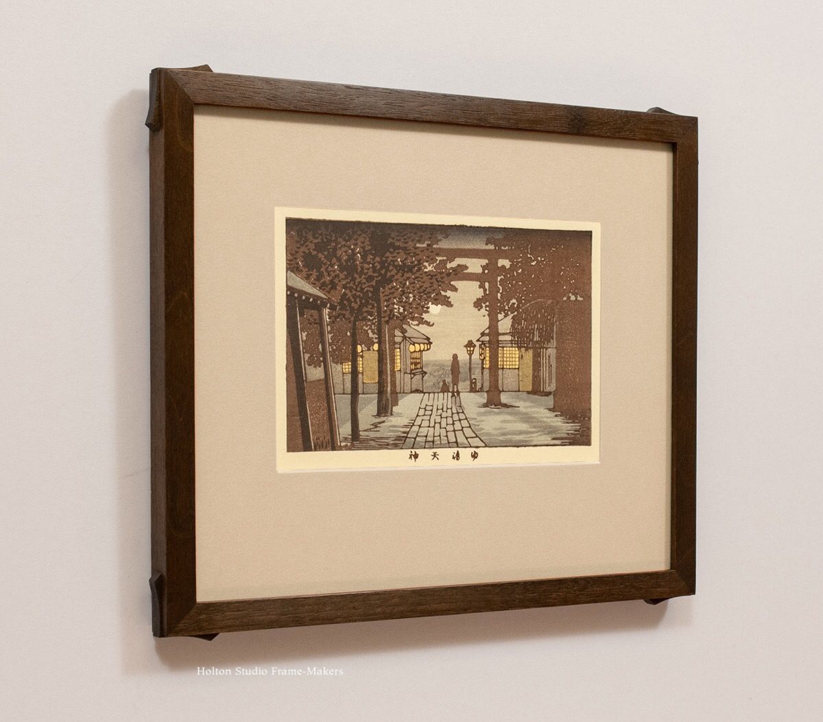 This isn’t the first print we’ve made this design for. Here’s a Kawase Hasui woodblock of a row of cozy minkas lining a village street on a rainy night (more on this one in the Portfolio)…