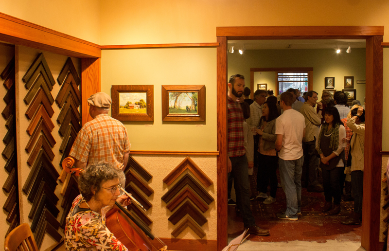 I’ve just put up the web page for our current show, “Beloved California: Sixteen Painters With a Passion for Place.” Shots of the opening are at the bottom of the page. As you can see, the event was a great success, with a big, enthusiastic turnout, and beautiful live cello music (thank you Gael Alcock!). Also a rousing round of “Happy Birthday” sung to Paul Kratter! Visit the show’s page, here.