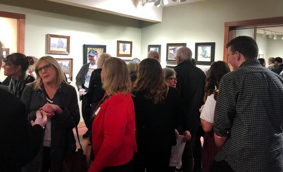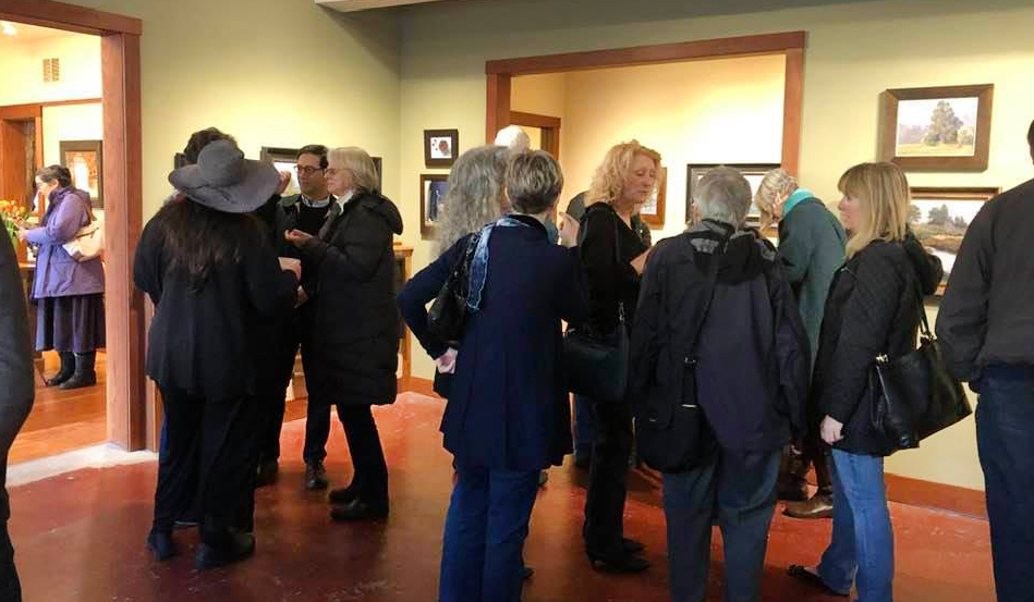 Our reception this past Saturday evening for our new show “Treasures From the Bay Area: New Paintings by the California Art Club” drew a big and enthusiastic crowd. We feel very honored and privileged to be hosting this show, and everyone, from the organizers to the judges to the hanging crew worked hard to make it happen. I want to thank the historic California Art Club, and especially CAC SF Bay Area chapter co-chairs Ellen Howard and Paul Kratter, as well as CAC Exhibitions Manager Addy Stupin (who drove up from Pasadena for the event), and of course our own Jessie Dunn-Gilbert, with indispensable help from Sam Edie.