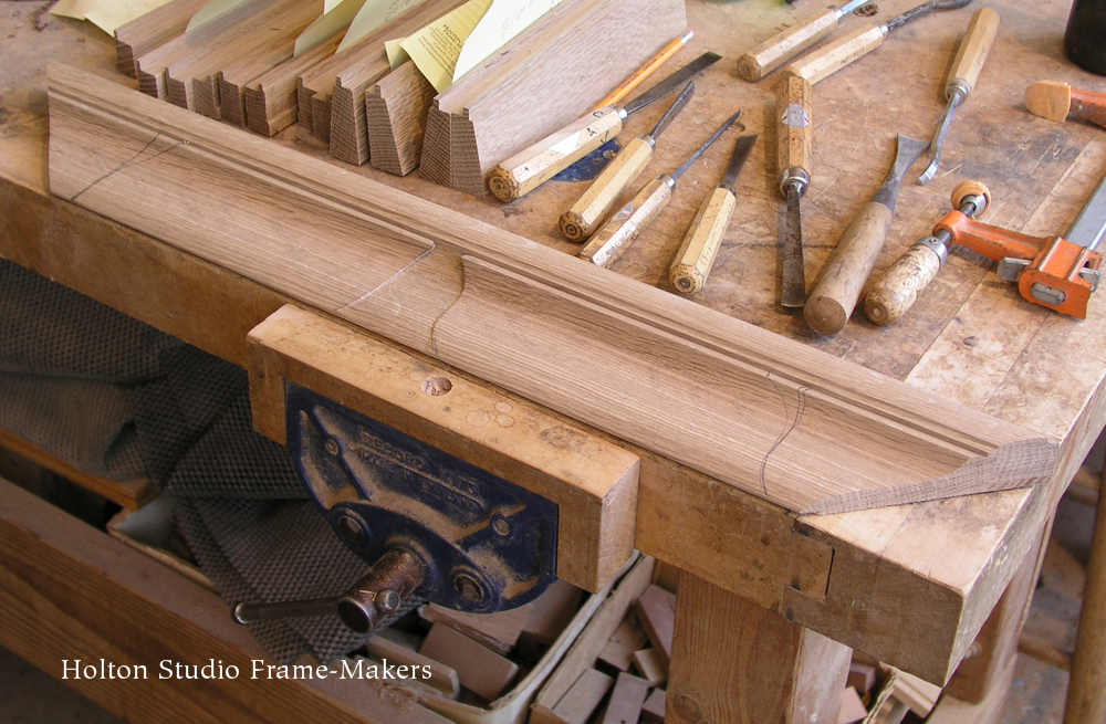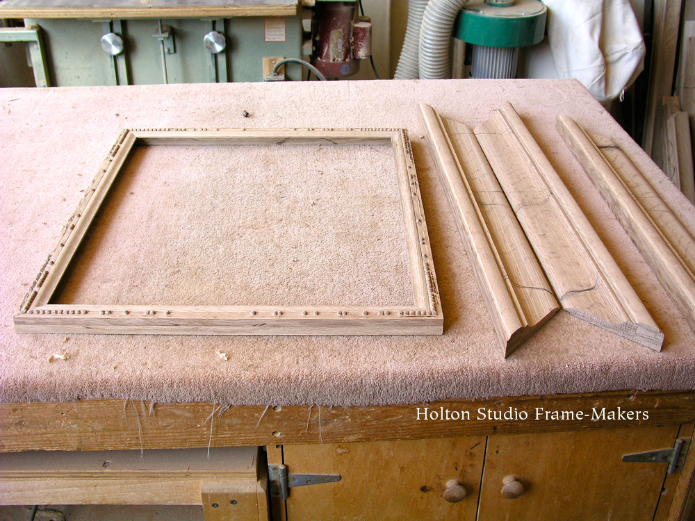 The first choice in frame-making is the material, and revering nature, Mathews revered wood. I picked quartersawn white oak for my frame. Oak was not only a favorite of the artist, iconic of the state to which the artist was so totally devoted, but also full of ancient mythical power. Not least of all, it connotes strength, durability and permanence. Thus a painting in an oak frame is an artist’s vision given a firm, enduring and definite place.