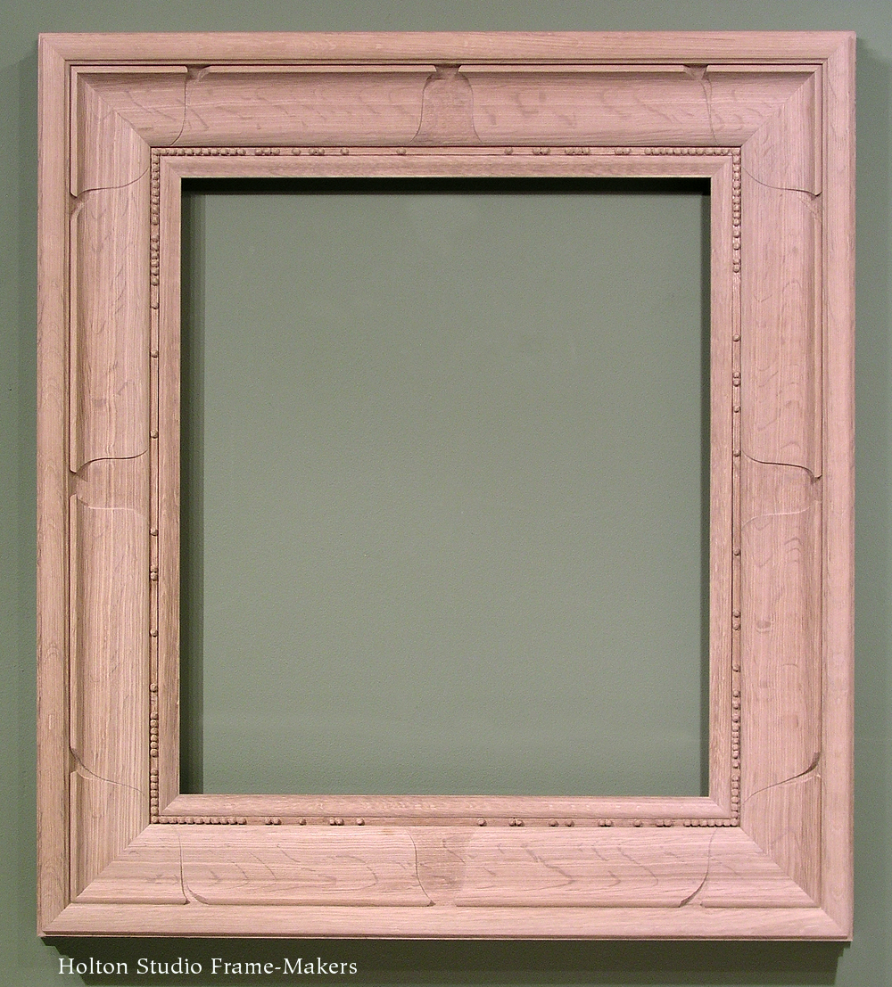 The challenge of framing this piece was to honor not only the painting but the extraordinary artistic legacy and standard of the Mathewses’s frames. But I knew that trying to make a “Mathews frame,” or even a “period style” frame, would result in a second rate affair. Mathews’s genius as a frame-maker rested above all on his treatment of it as a living art form, and so that had to be my aim as well. I took the Mathewses’s regard for the decorative possibilities of the frame and combined it with close study of the painting itself, and then trusted my understanding of what makes an effective frame.