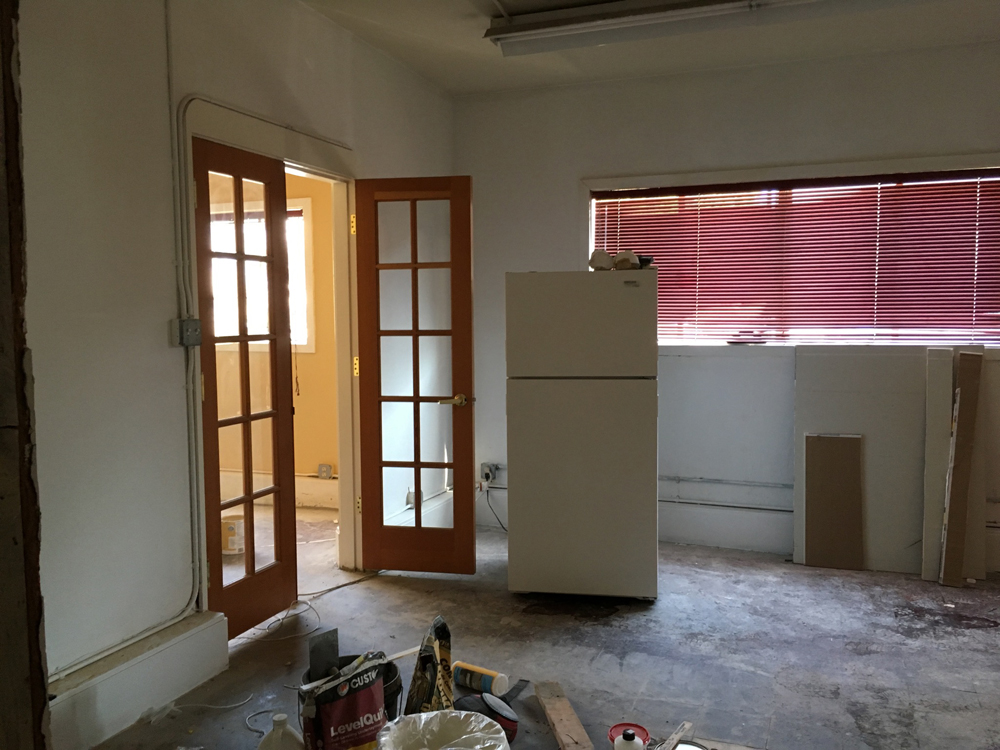 The dream team that made the move possible, having a well-deserved beer just before the grand opening. Left to right: Eric Johnson, Juan Lopez, Trevor Davis, Sam Edie (behind Trevor), Melchore Mendiola, Tim Holton, Joe Pieri, Jessie Dunn-Gilbert, and Karen Gorman. Not in the picture, but deserving credit: Stephanie McCoy (who took the picture), Jeff Lena, Carlos Reyes, Howard Ingram, Kevin Brown, and Cesar.