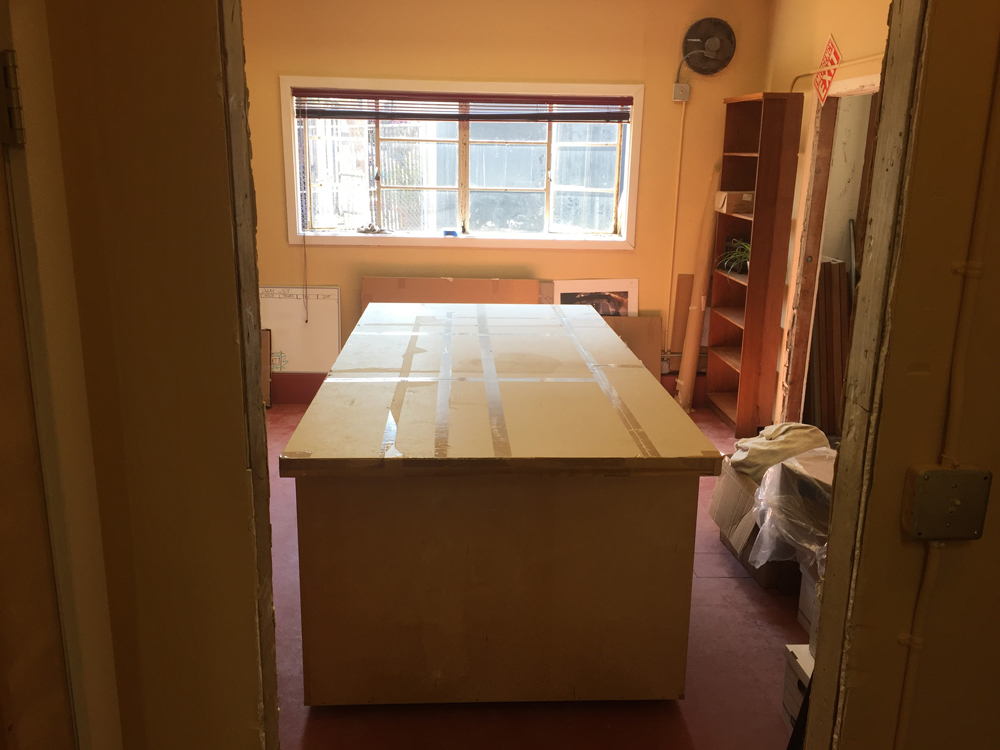 - Fitting table’s installed in the fittng room.