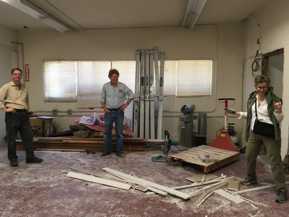 - Sam Edie cleaning up the new floor.