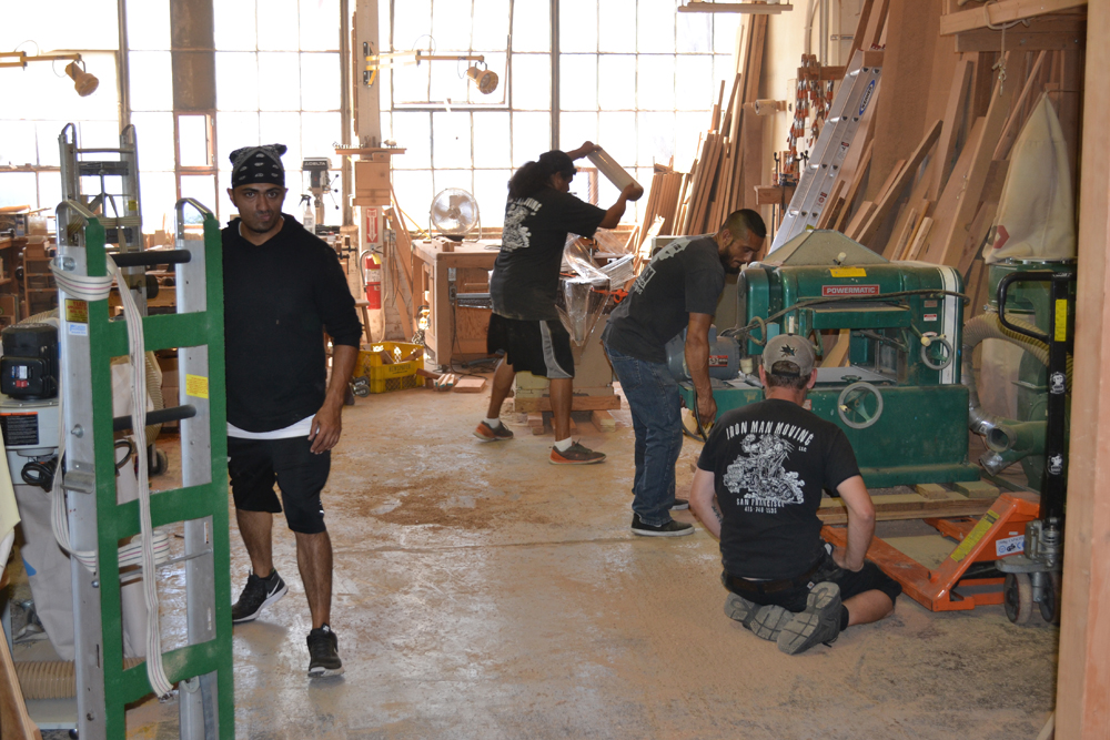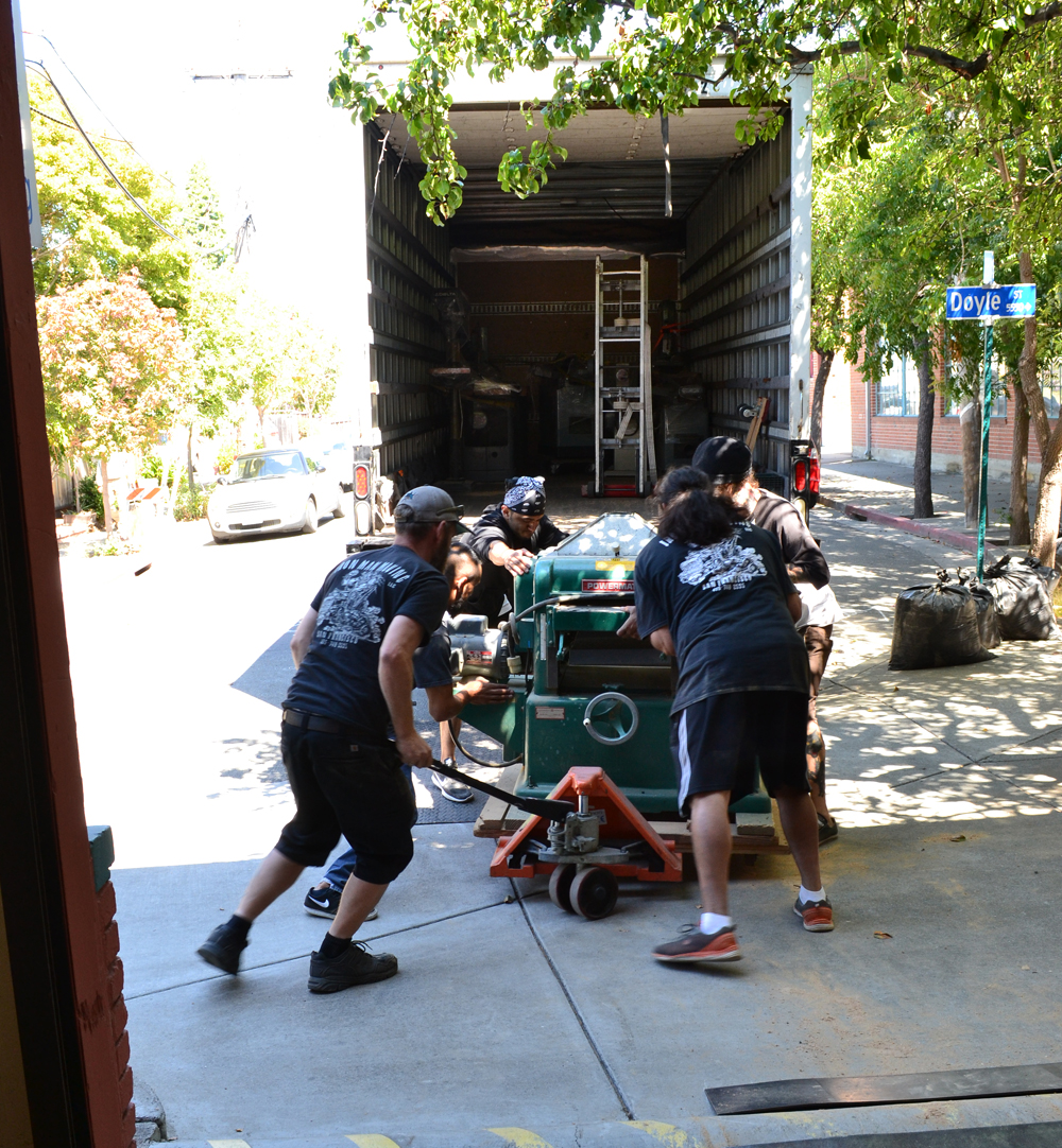 - The riggers, Iron Man Moving Co., prepare to move the machinery out of the old shop.