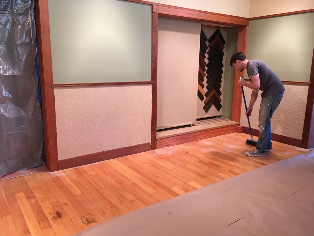 - Sanded and finished fir subfloor that was under the vinyl tile.