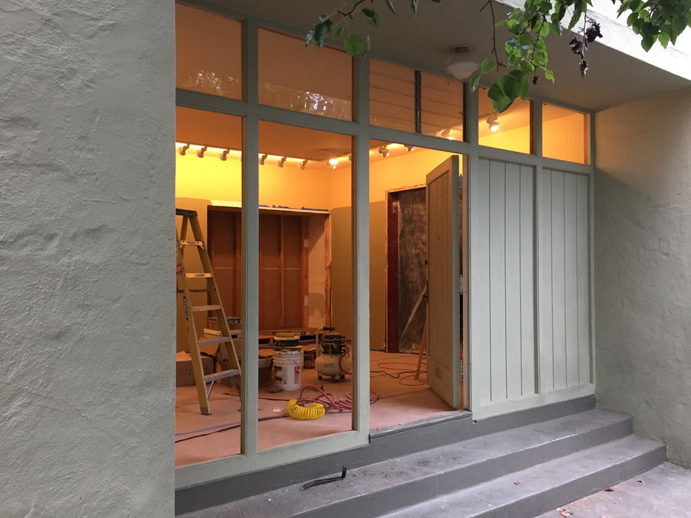 - Storefront windows all installed, and papered over till work is done.
