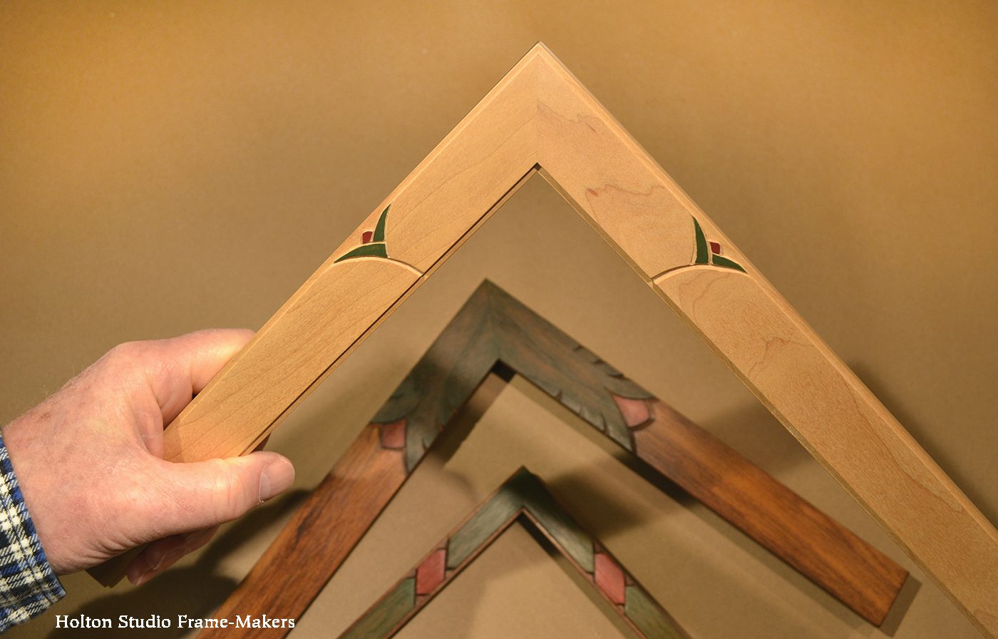 Here are a few recent and particularly seasonal carved and painted corner samples I made. The middle one’s soft maple and the other two are walnut. All have simple carving and are painted with linseed oil paint.