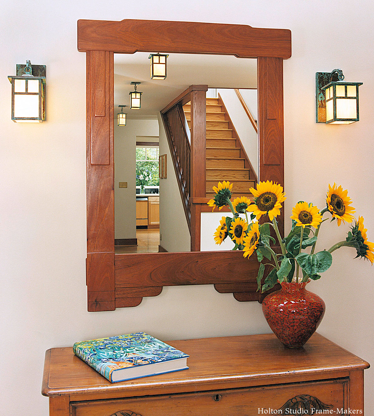 I’m fortunate to have five or six of my mirrors hanging in the restaurant and upstairs cafe. One just like the mirror below on the left hangs in the entrance. The one on the right hangs in the dining room.