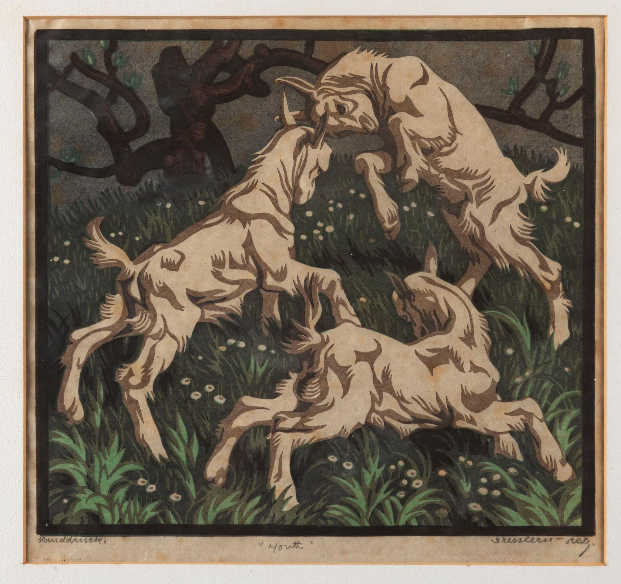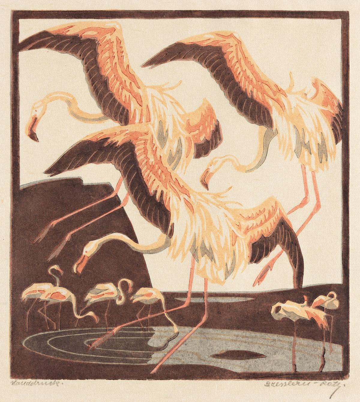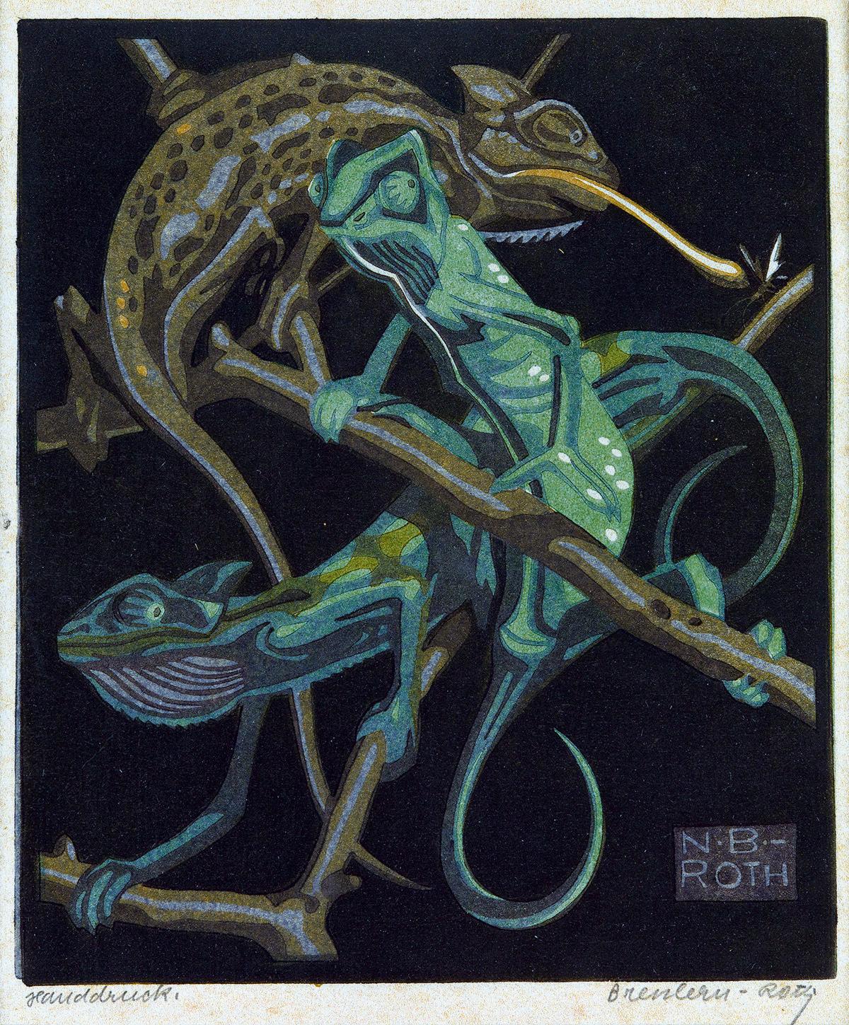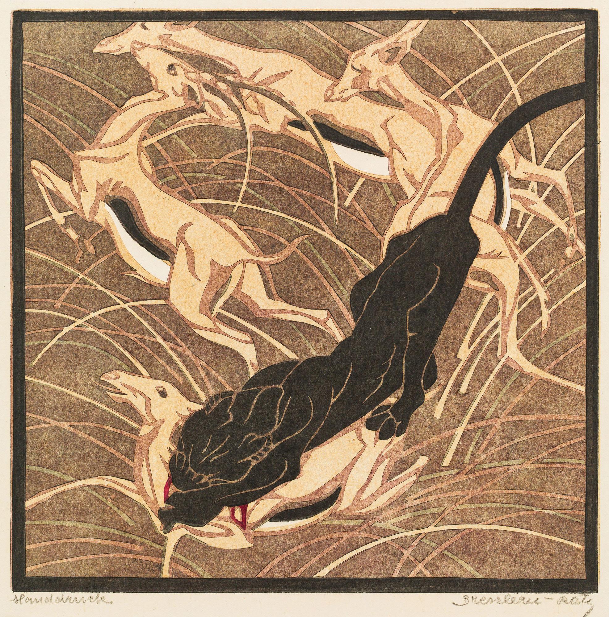 This is a linoleum block print by Norbertine von Bresslern-Roth (Austria, 1891-1978), who some regard as the greatest twentieth century European animal artist.
