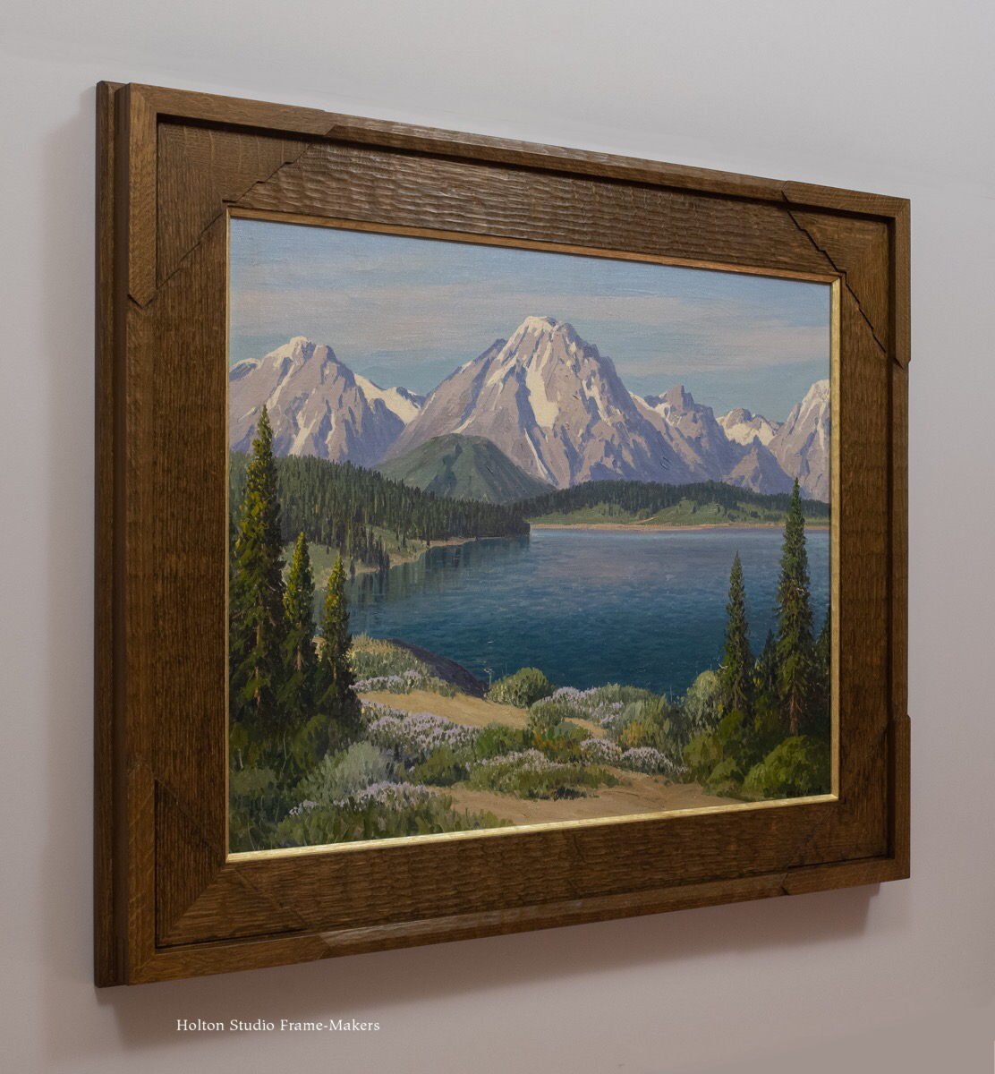and a few notable paintings we framed for him, including this mountain scene by Carl Sammons (1883-1968). The 24″ x 30″ canvas, titled “Mt Moran—Jackson Lake—Teton Mountains, Wyoming,” is from the 1920’s. More on Gus’s site, here.
