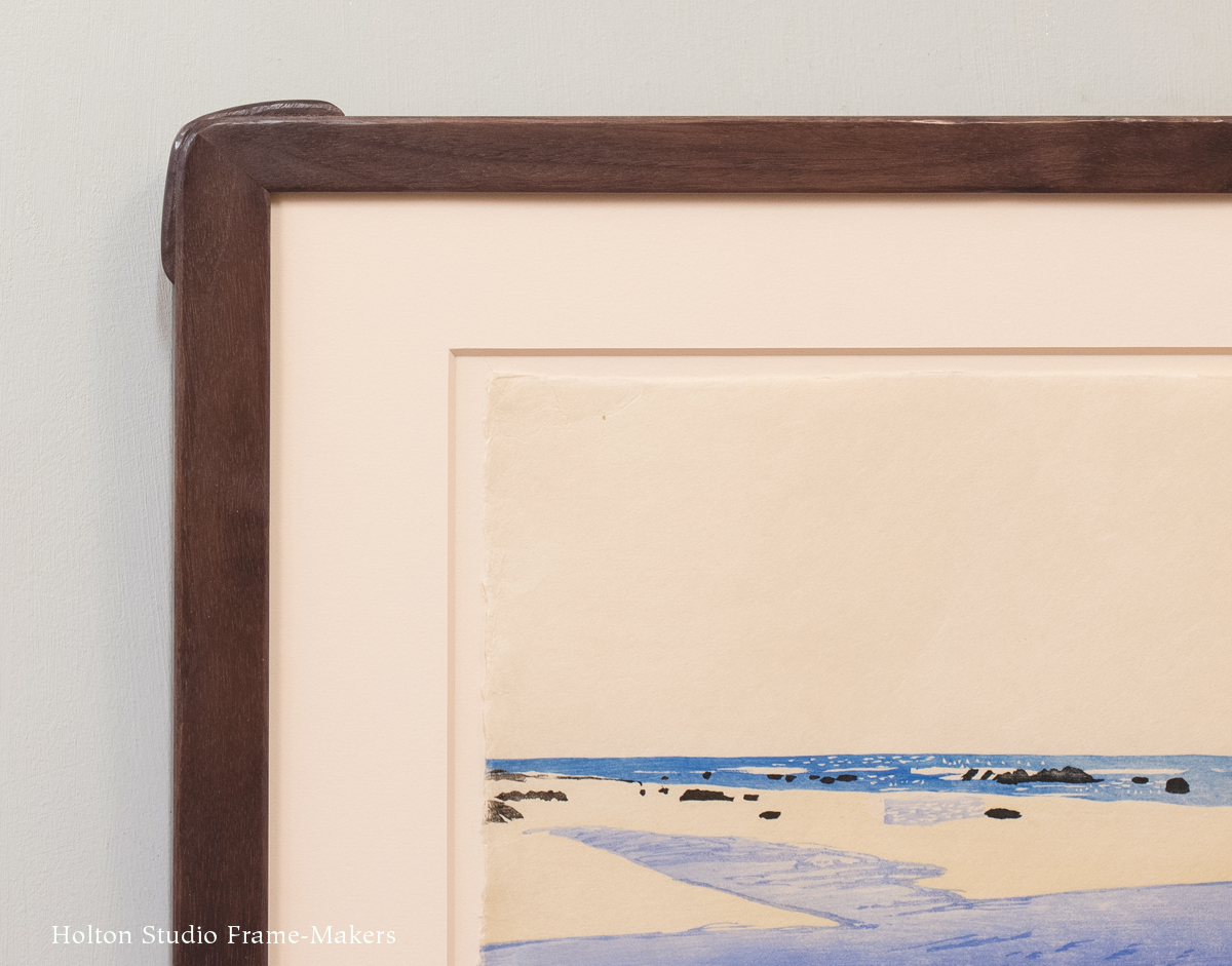 One of the first principles of frame-making is to find a harmony between the art of the frame and the art of the picture. Because both frame-making and woodblock printing entail wood and its shaping, that harmony comes especially naturally.
