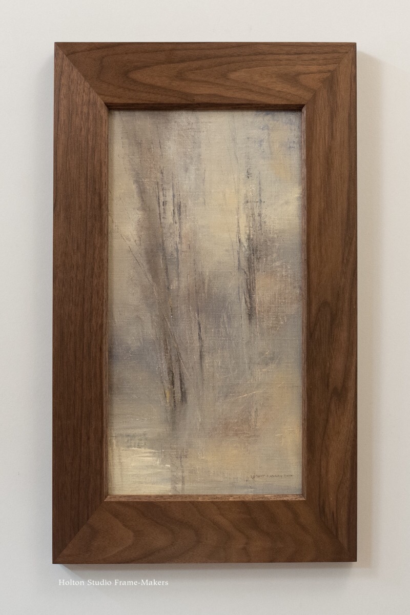 One day in the last century a painter showed up at the studio with a batch of canvases. He was in town from Spokane, Washington, and his name was Robert Flanary. Robert explained that in addition to being an artist, he dealt in antiques from the American Arts and Crafts movement of the early twentieth century, and that as a painter he had naturally developed an eye for the oak frames of the period. A friend of his had told him about us. She was a writer for American Bungalow Magazine, and was acquainted with our work from our ads in that publication. Robert liked what we were doing with the tradition and wanted some of our frames. When he laid out his paintings on the design table, Trevor and I were both instantly smitten with their extraordinary quality and uniquely shadowy, earthy palettes. We not only itched to frame them but to hang them on the showroom walls. I told Robert that if he wanted to leave some paintings with us, we’d frame them—at no expense to him—hang them up and maybe sell one or two. He was game, and that became the model for what would eventually become the Holton Studio Gallery.