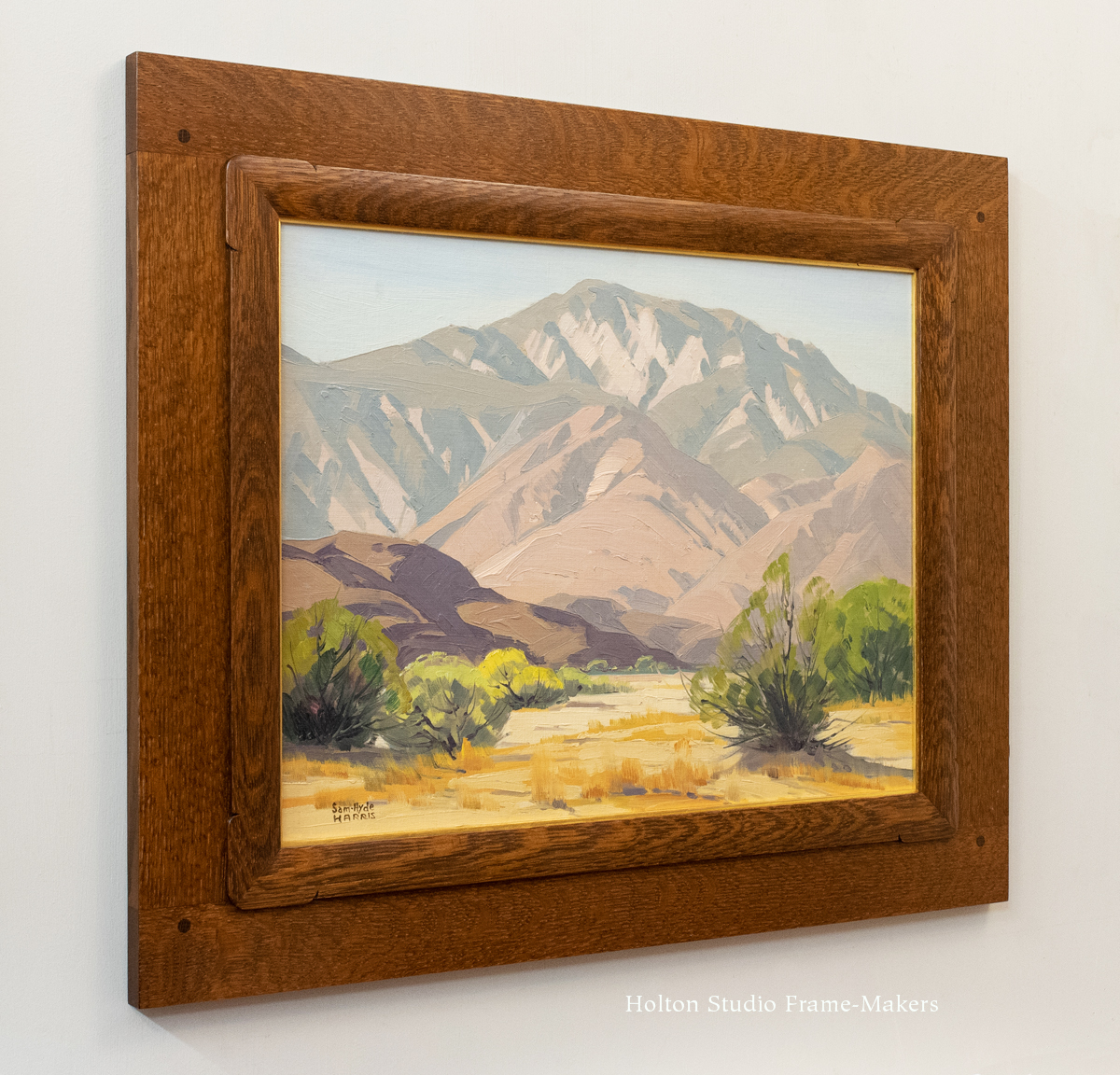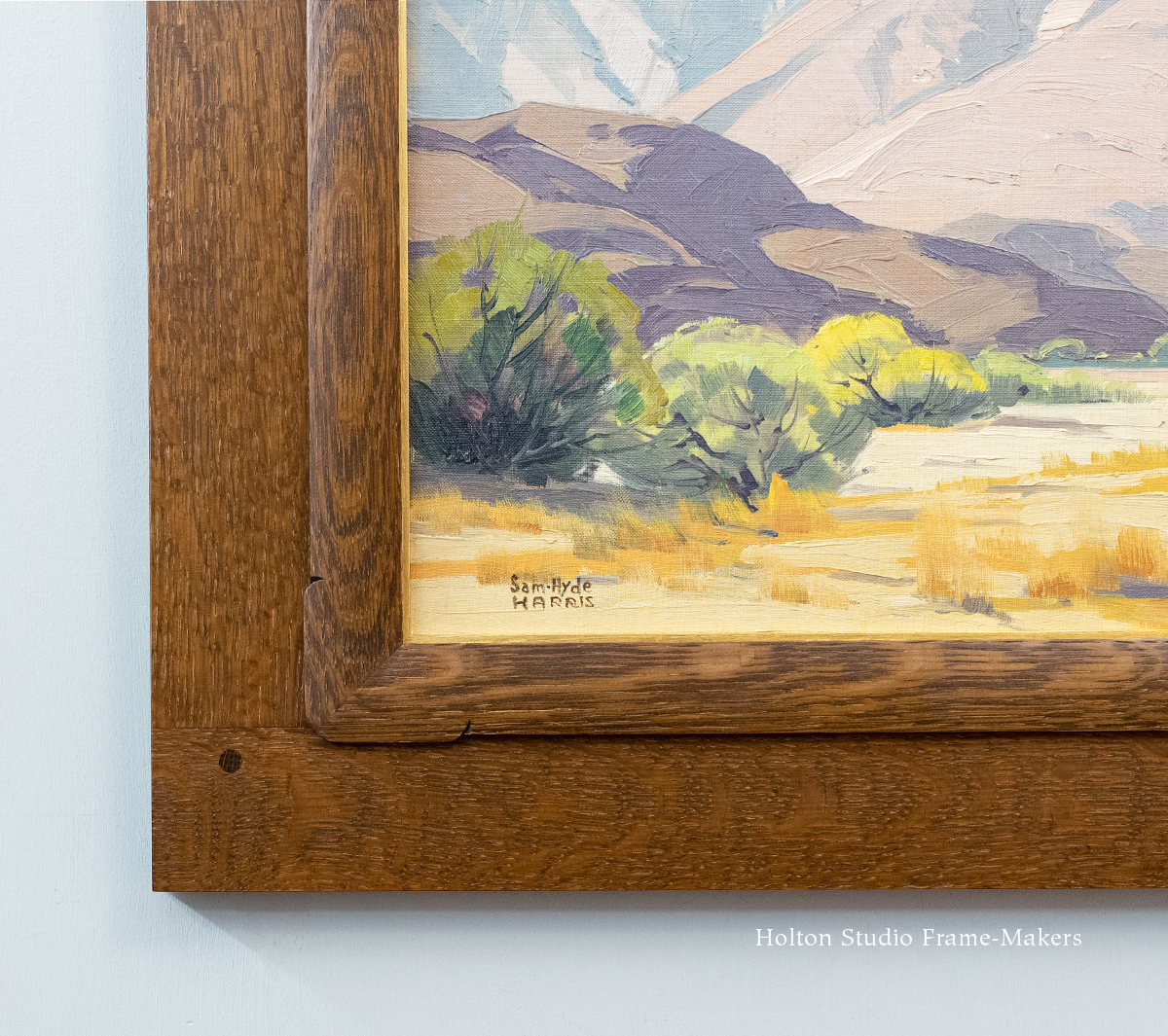 We just framed these three landscape oils by the gregarious and much loved southern California painter Sam Hyde Harris (1889-1977). On all three I played with outset corners, although on “Enclave,”