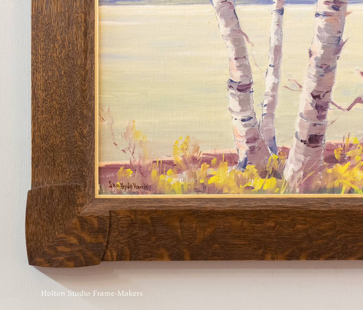 Below: Lakeside Birch Trees, n.d. Oil on board, 15-1/2″ x 19-1/2″. Profile is 3-1/4″ wide.