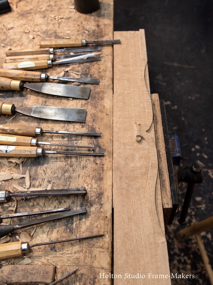 It’s not often that we do anything in a baroque style, but since one of our founding principles is adaptation, when a customer sent me a 17th century map of the Americas to frame, I welcomed the challenge. The map’s wonderful illustrations included numerous cues for a frame design, and I settled on a scroll, or cartouche pattern on each side.