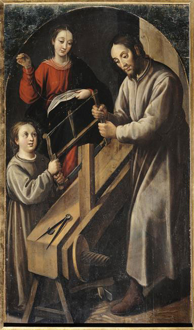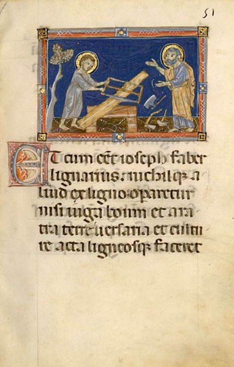 This was not just an idea. In reality, the first paintings were murals, and often the walls were timber-framed—that is, the work of joiners. And the first easel paintings were on boards joined and prepared by joiners, with edges raised to form an integral frame, or molding permanently joined to the panel. Before the western world made up the false distinction between art and labor (or craft), and between artist and artisan, painters and sculptors came up through the ranks of, and closely collaborated with, other artisans—most closely with those who built the altars and other frames and supports for their work. Naturally, then, they held the arts in general in reverence. Giotto’s tribute to the arts that encircles the base of the Campanile in Florence is just one of innumerable medieval examples of fine artists depicting and thereby honoring artisans, including joiners, and their workshops.