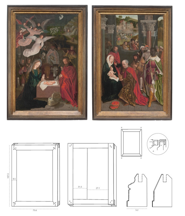 Below is a typical page from Frames and Supports in 15th and 16th Century Southern Netherlandish Painting. This one shows an anonymous “Adoration of the Magi” from Bruges, ca. 1510. The joinery in the diagrams at the bottom right are what I used for the frame for “Atlantis.”