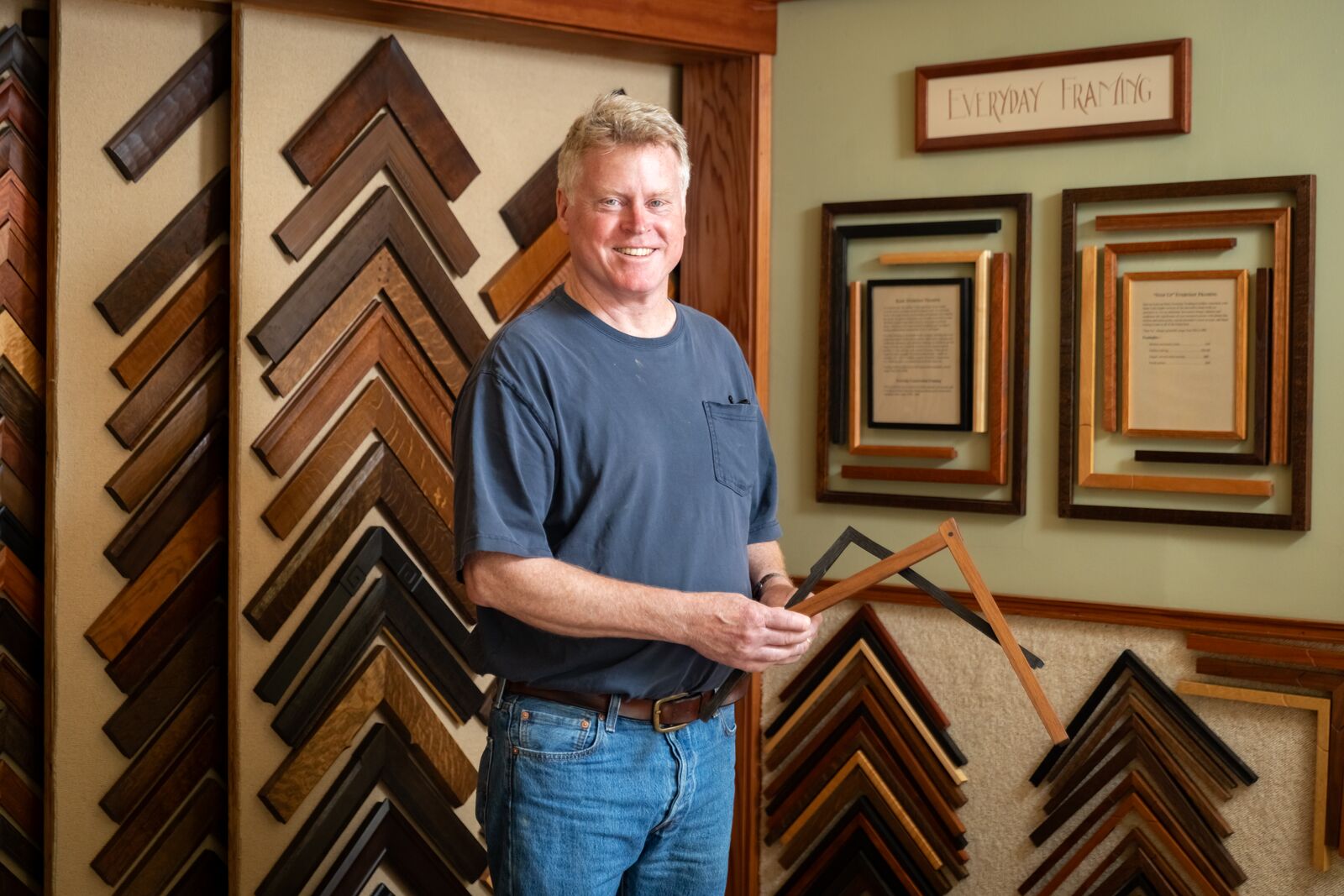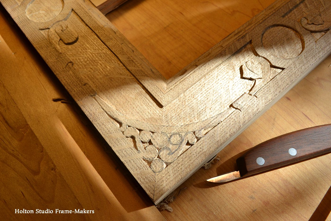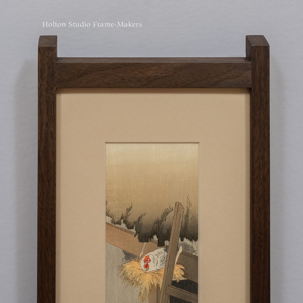 The frame is not a reproduction and we certainly made no attempt to deceive by trying to make it look like something it isn’t—an antique. The object was as it always is in frame making: to create a living and harmonious architectural place for the picture.