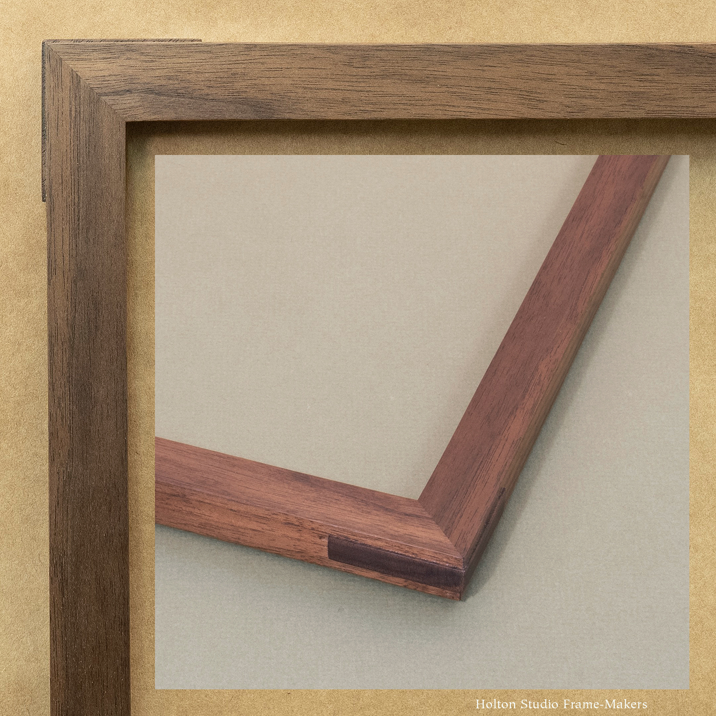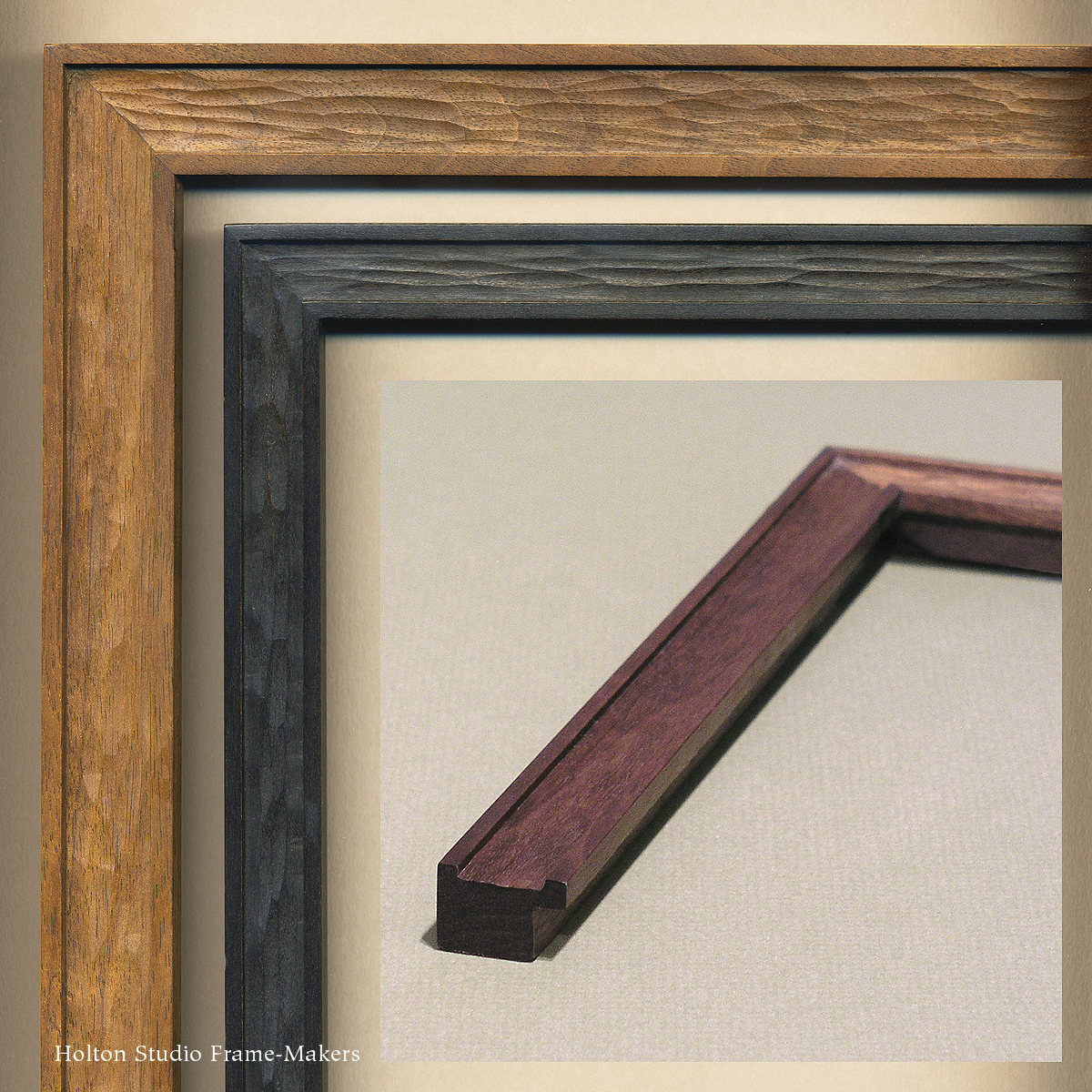 - Our full, top-notch custom design service. We’re happy to help you choose the most suitable frame profile, wood and stain, and mat for your art work.