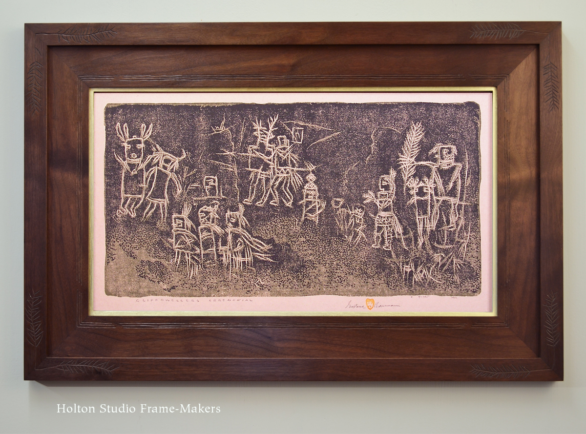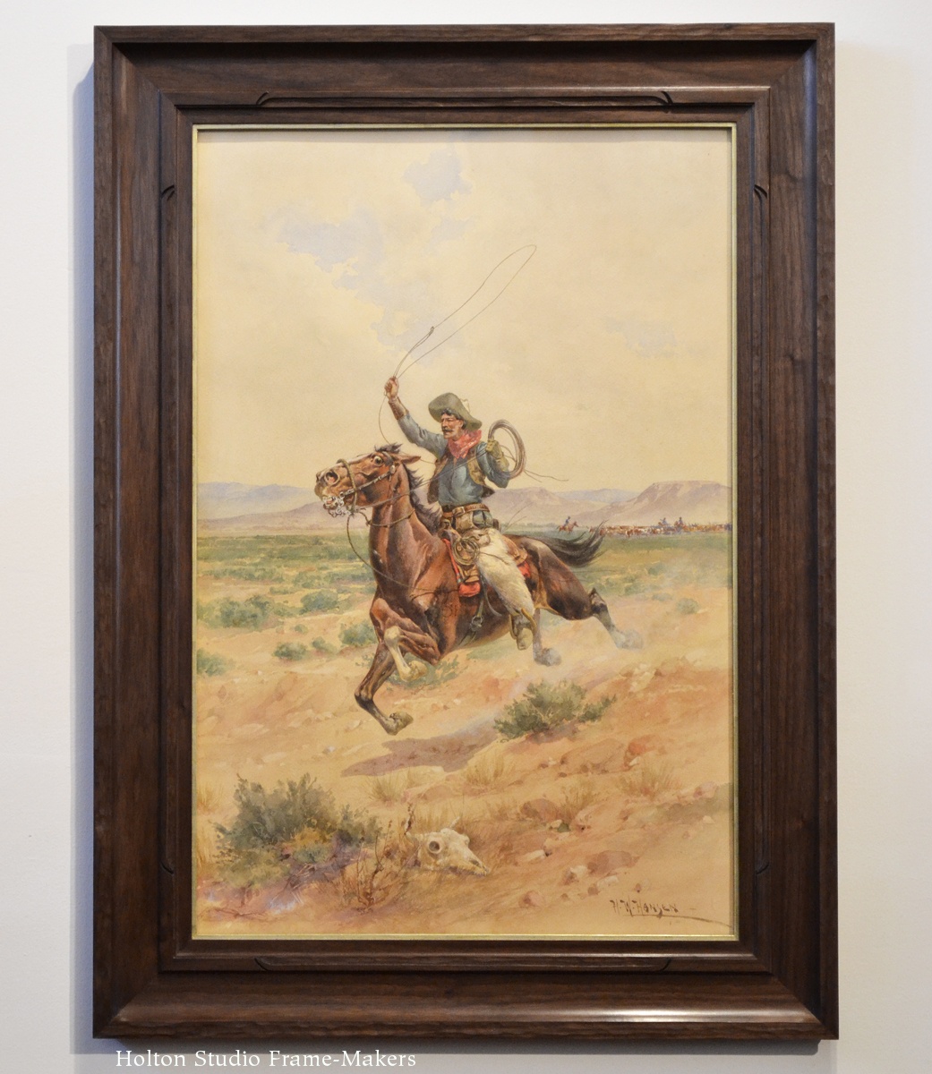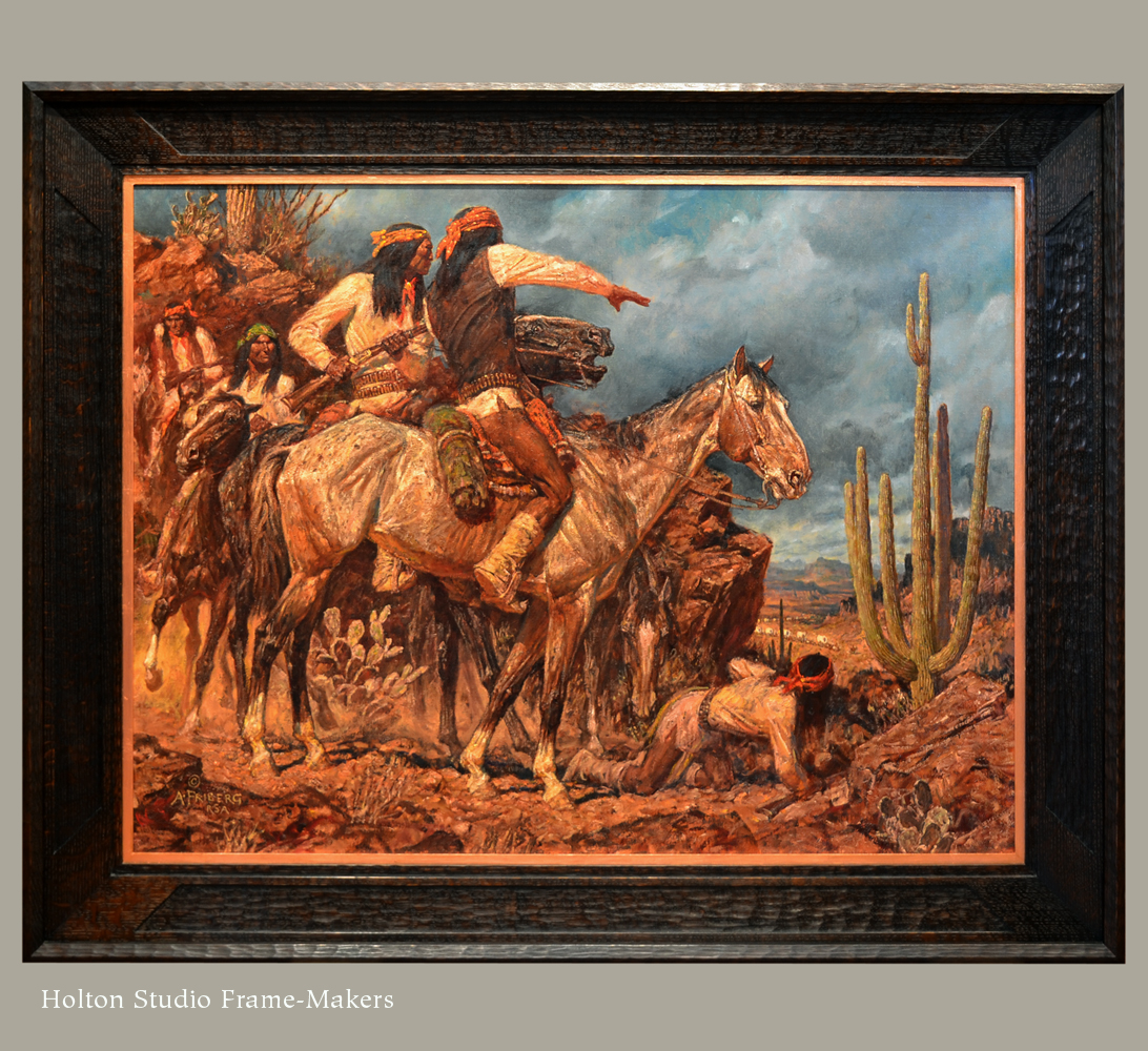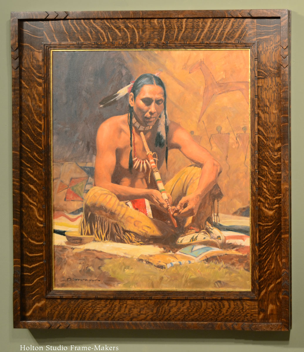 - Hyatt Moore painting, “Cheyenne Boy,” in carved corner frame