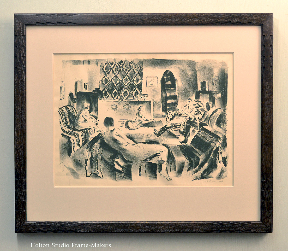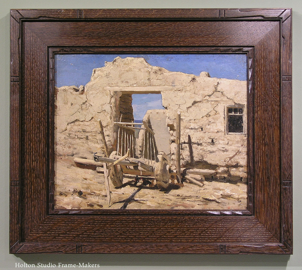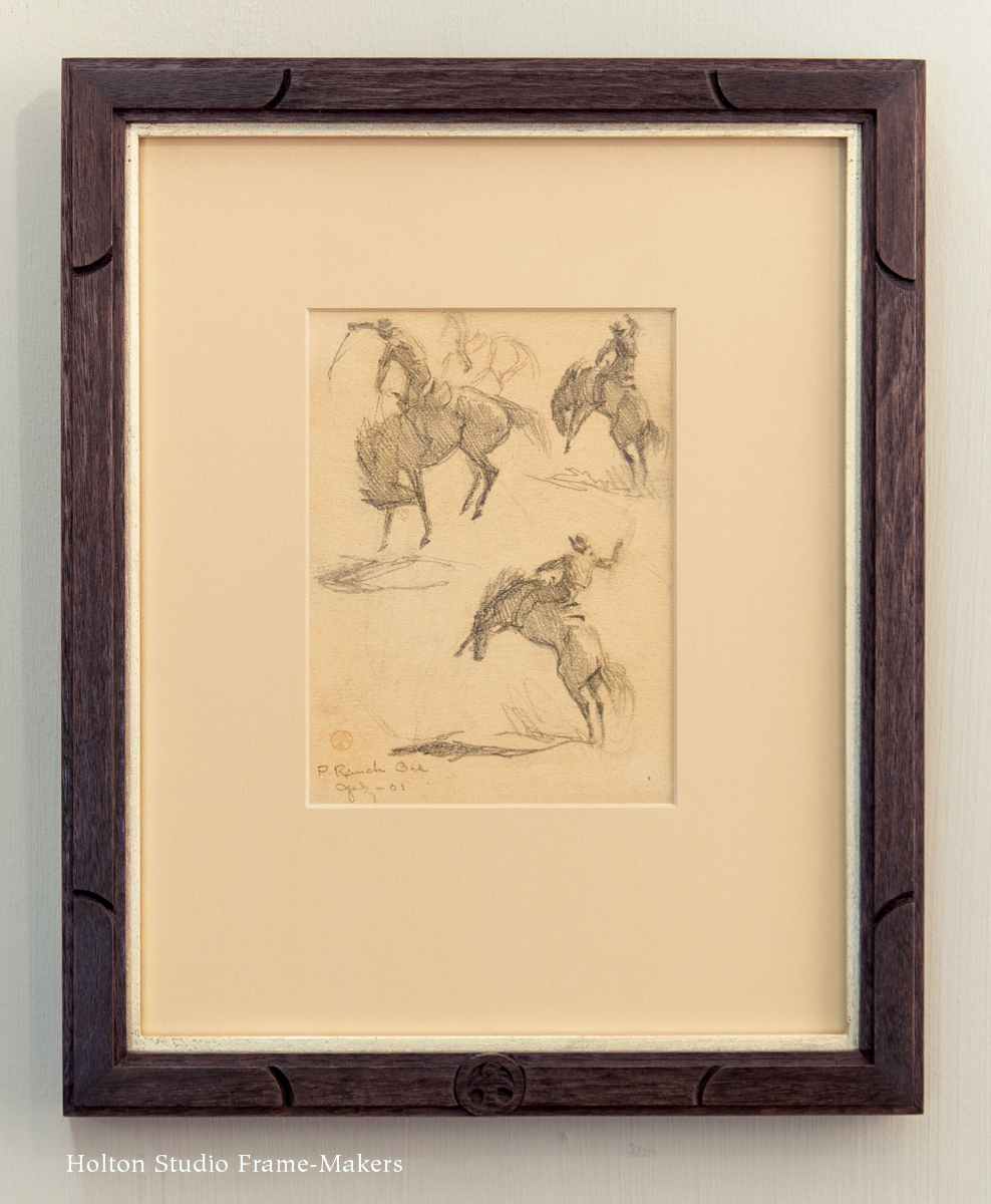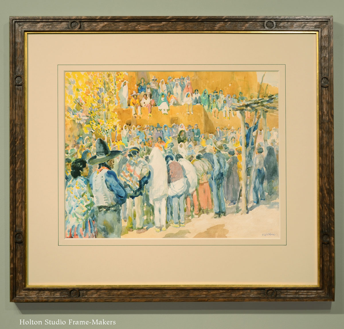- Hyatt Moore painting, “Cheyenne Boy,” in carved corner frame