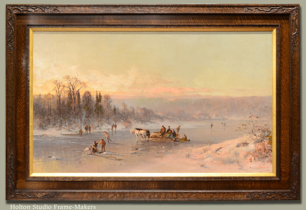 - Carved capped Aurora frame with carved gilt liner, on large historical oil painting*
