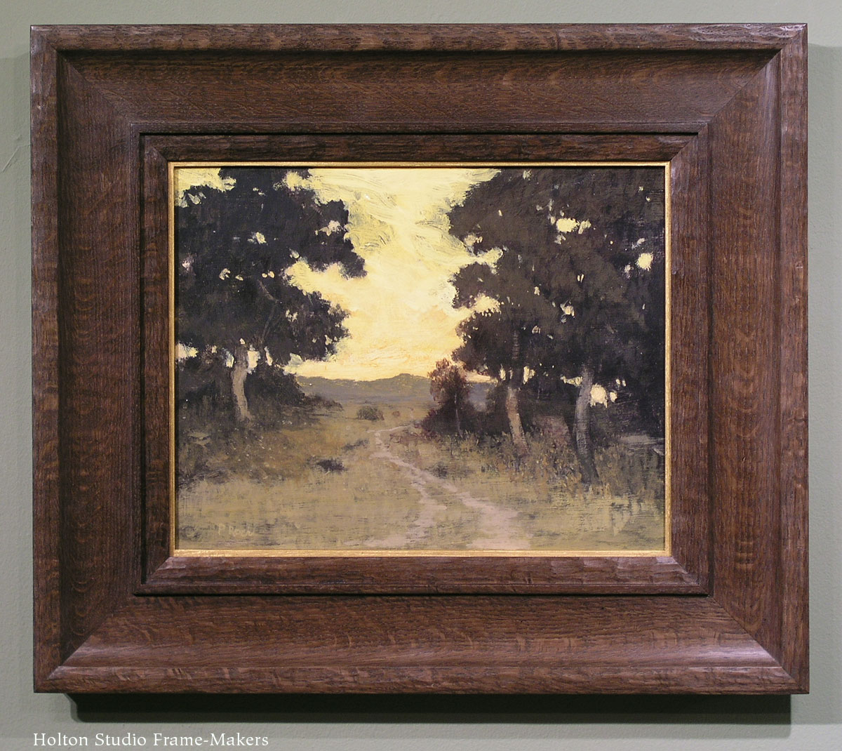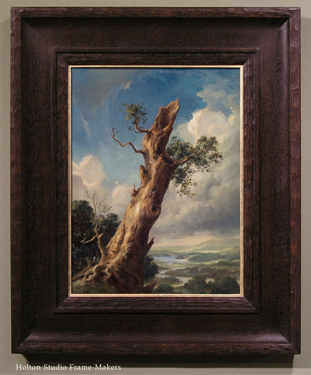 No. 341.4 CV—3″ with gilt slip on watercolor by Francis Davis Schwartz (1879-1969), “Eucalyptus Trees,” ca. 1920. 10″ x 18″.