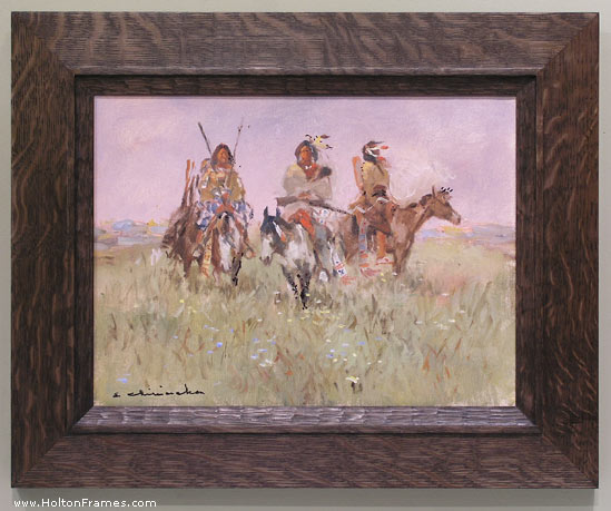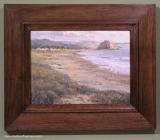 A very versatile and popular flat, especially for framing plein air paintings. The carved sight edge—a bevel (No. 17.2 CV), cove (No. 17.3 CV), or ovolo (No. 17.4 CV) echoes the texture of the brushwork, while the narrow raised panel outside the carved element enhances line work and provides more definition.