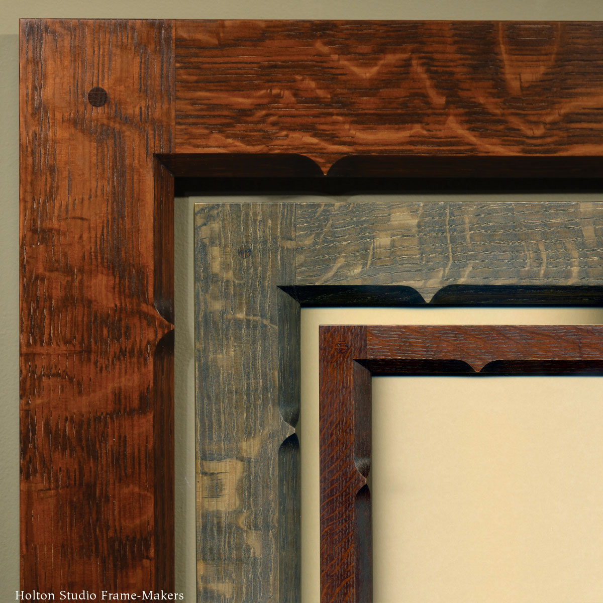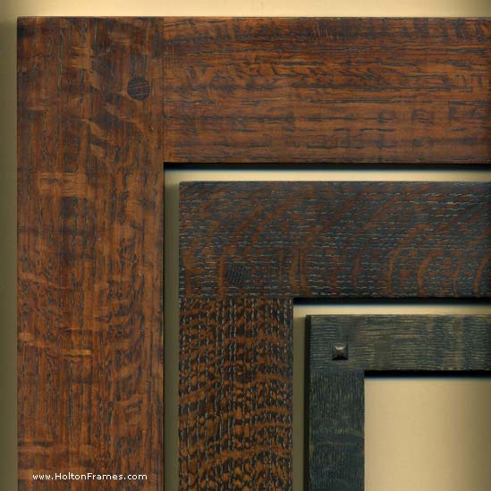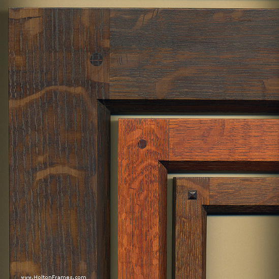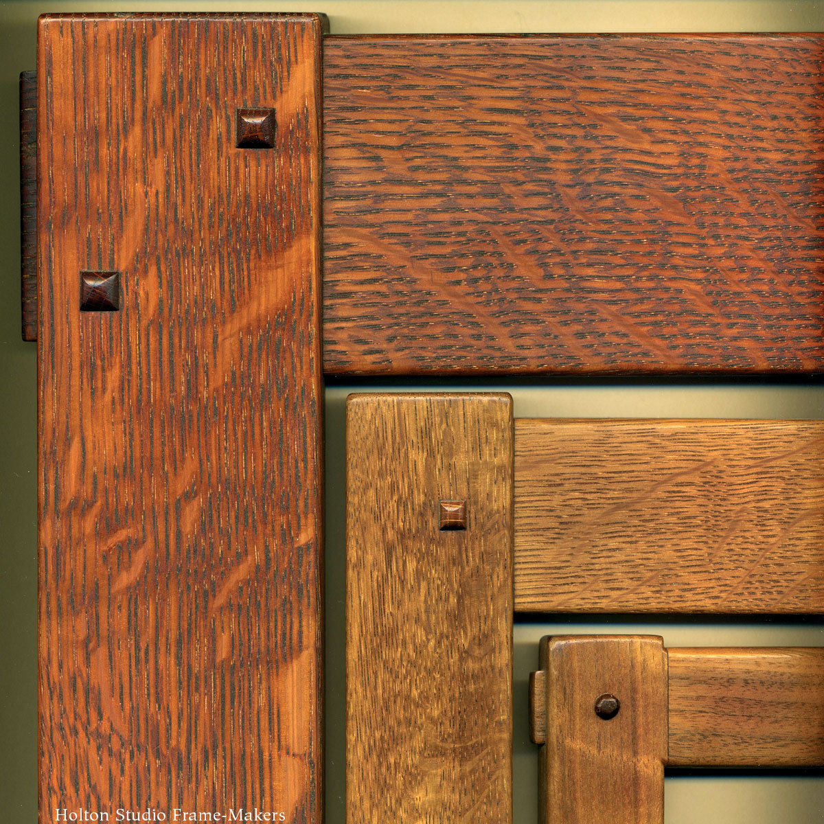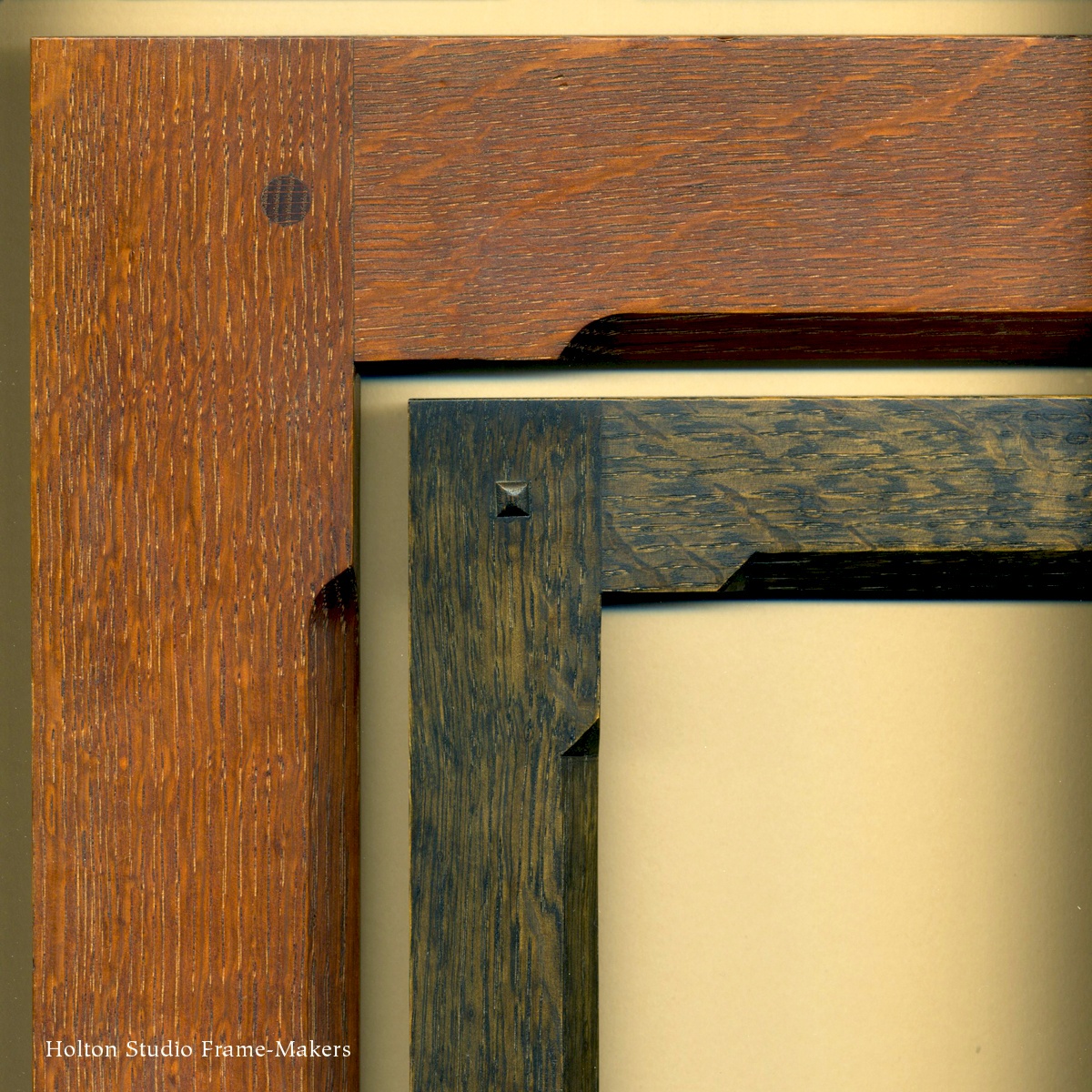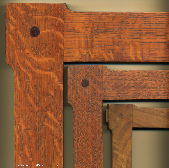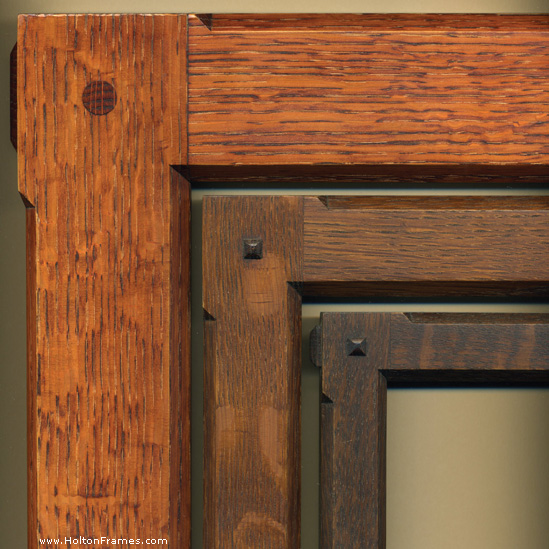 The joinery that sets these frames apart has been a hallmark of the best Craftsman style furniture since Gustav Stickley began manufacturing his line in 1901. More than a century later, the simple detail of pinned mortise-and-tenon joints — especially exposed through-tenons—still evokes those timeless virtues of quality, honesty and authenticity that have drawn such a following to the Movement. Such joinery brings a strong architectural feel to the picture, helping fulfill the Arts and Crafts Movement’s mission to restore the primal link between pictures and architecture. They’re also ideal for mirrors.