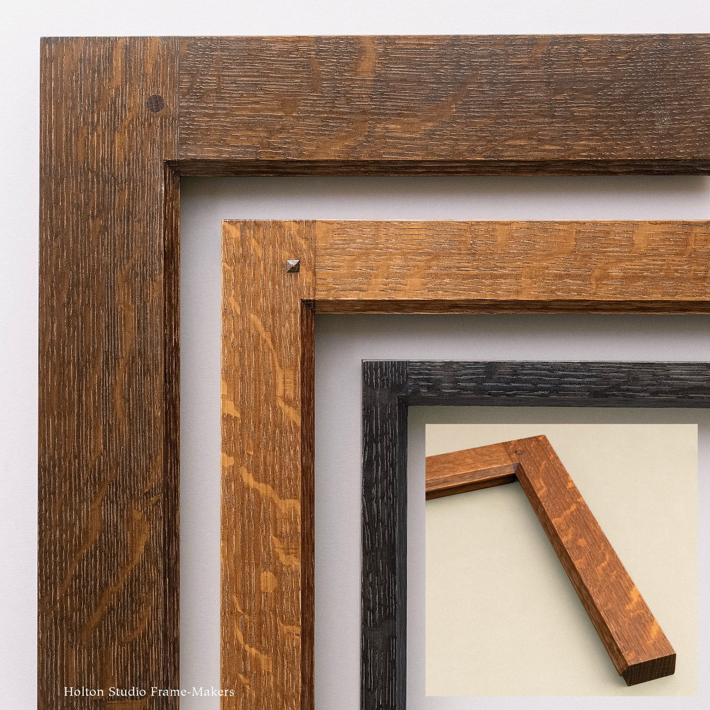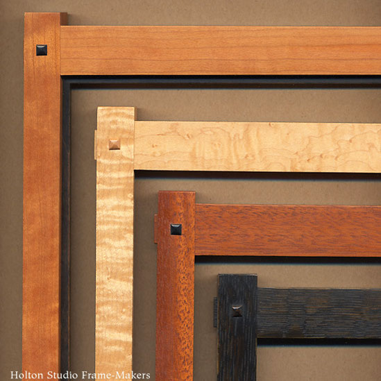 All are made from scratch, available in any wood, profile width and combination of widths, and infinitely customizable to harmonize with your picture. The pinning of each joint offers the opportunity to choose a corner treatment.