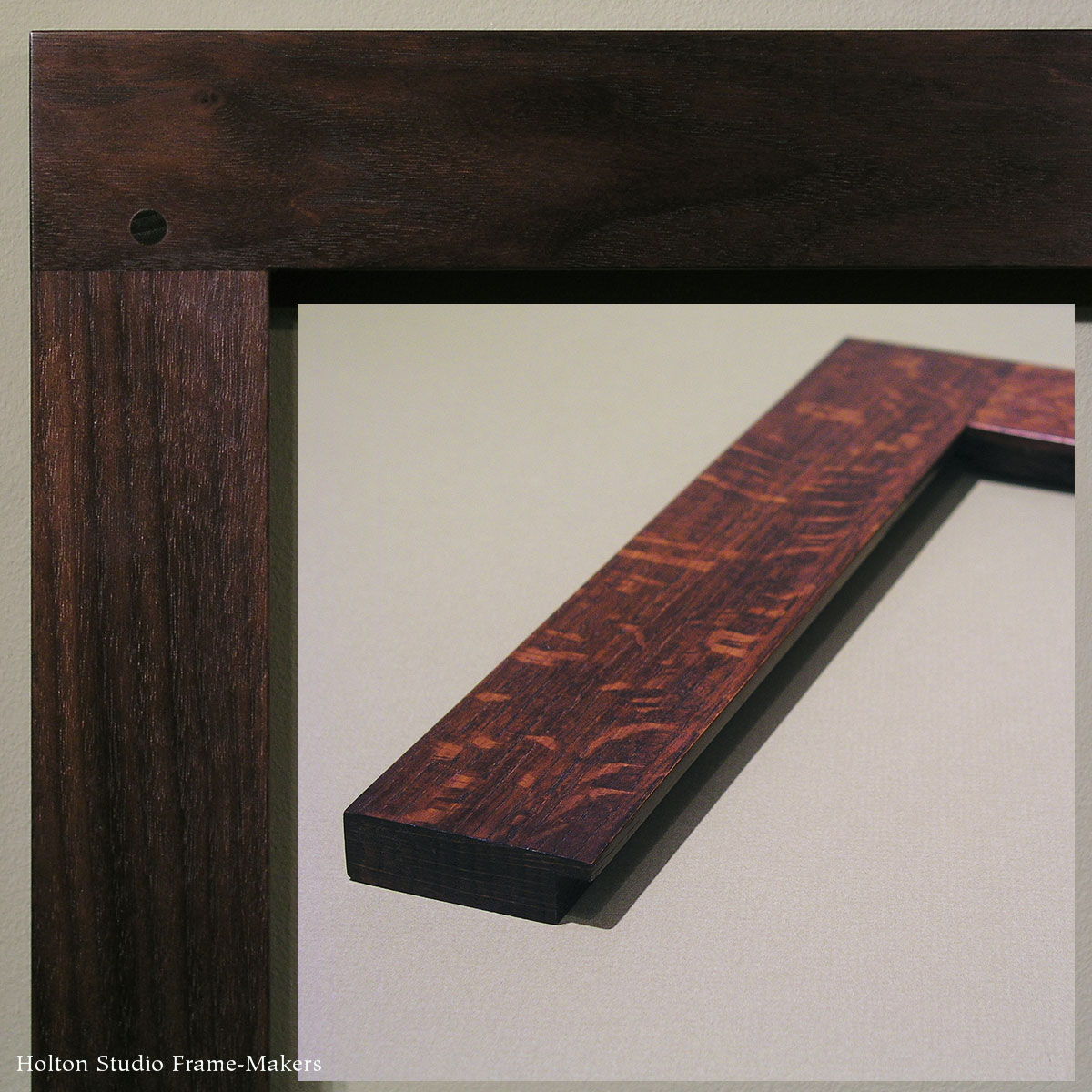 No. 1000 in stained Honduran mahogany showing custom options: combinations of different widths, multiple flush square plugs for corner treatments, and flush through-tenons.