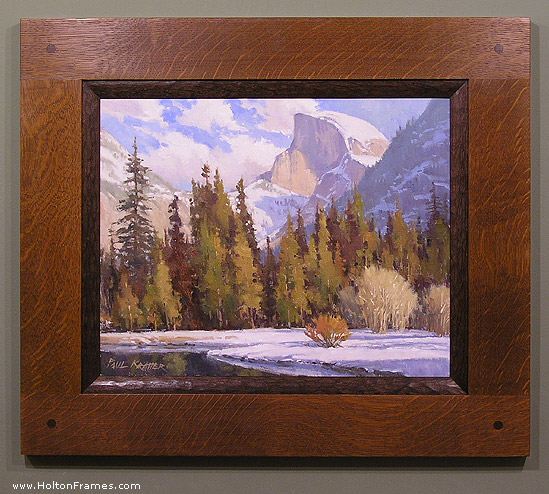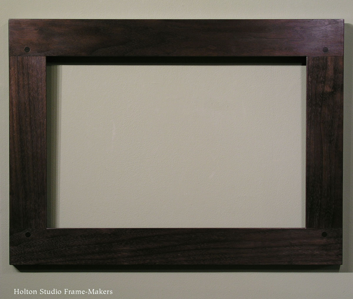 The essential cabinetmaker’s frame. Typically made with blind-tenons, but may also have through-tenons (flush through-tenons especially recommended; see photo at bottom of page). Horizontal members may be let into the sides, or vice-versa, as you like (orientation typically chosen to enhance proportions of the picture). Your choice of corner treatment.
