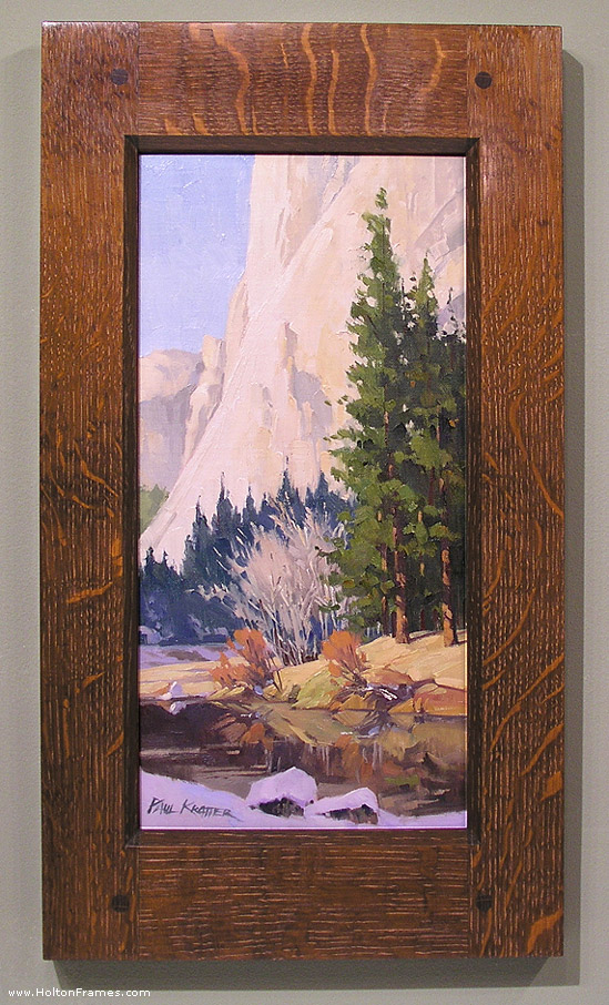 With a chamfered sight edge and “mason’s miter” at each corner, the No. 1000 brings much of the visual benefit of the mitered frame—the joint seam directing the eye into the picture—to a mortise-and-tenon frame. As with all Mortise-and-Tenon frames, the pinning of the joints can be articulated with different corner treatments. View corner treatment options...
