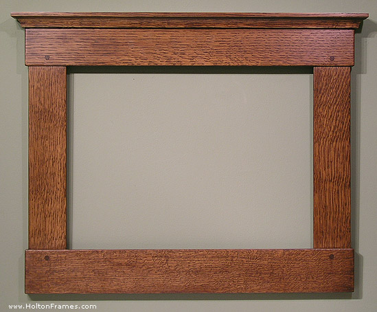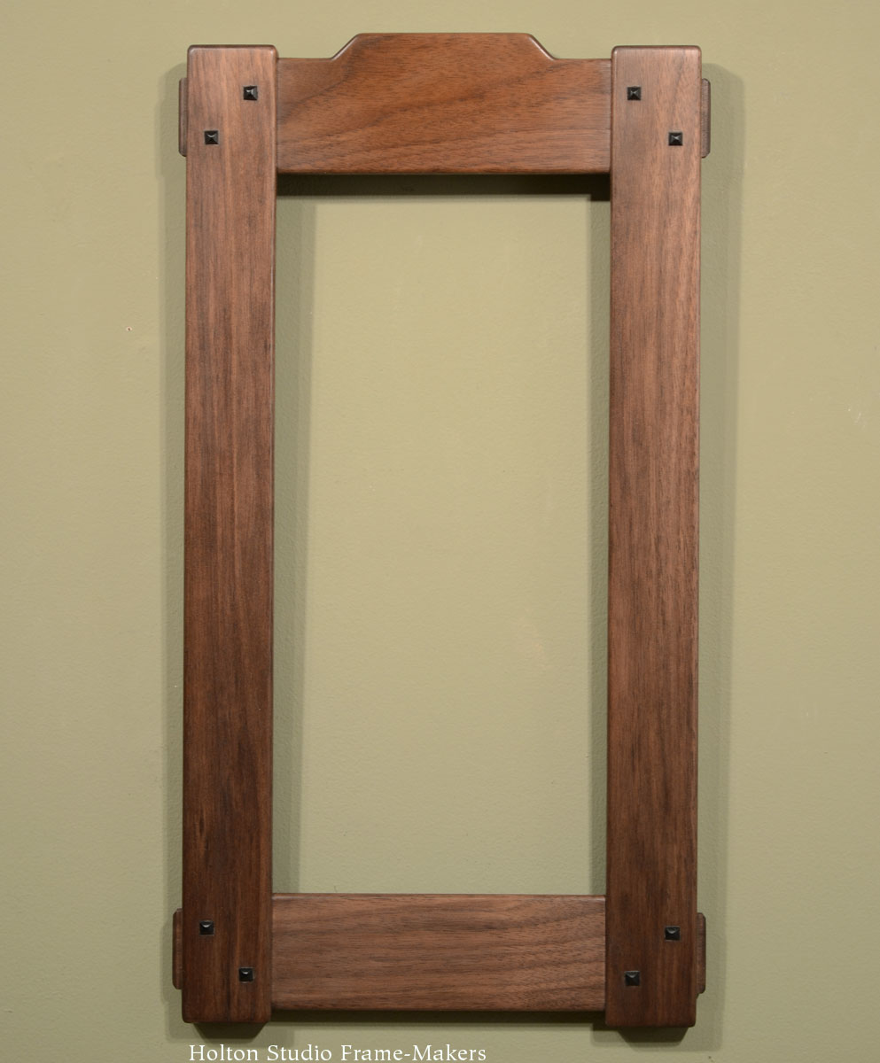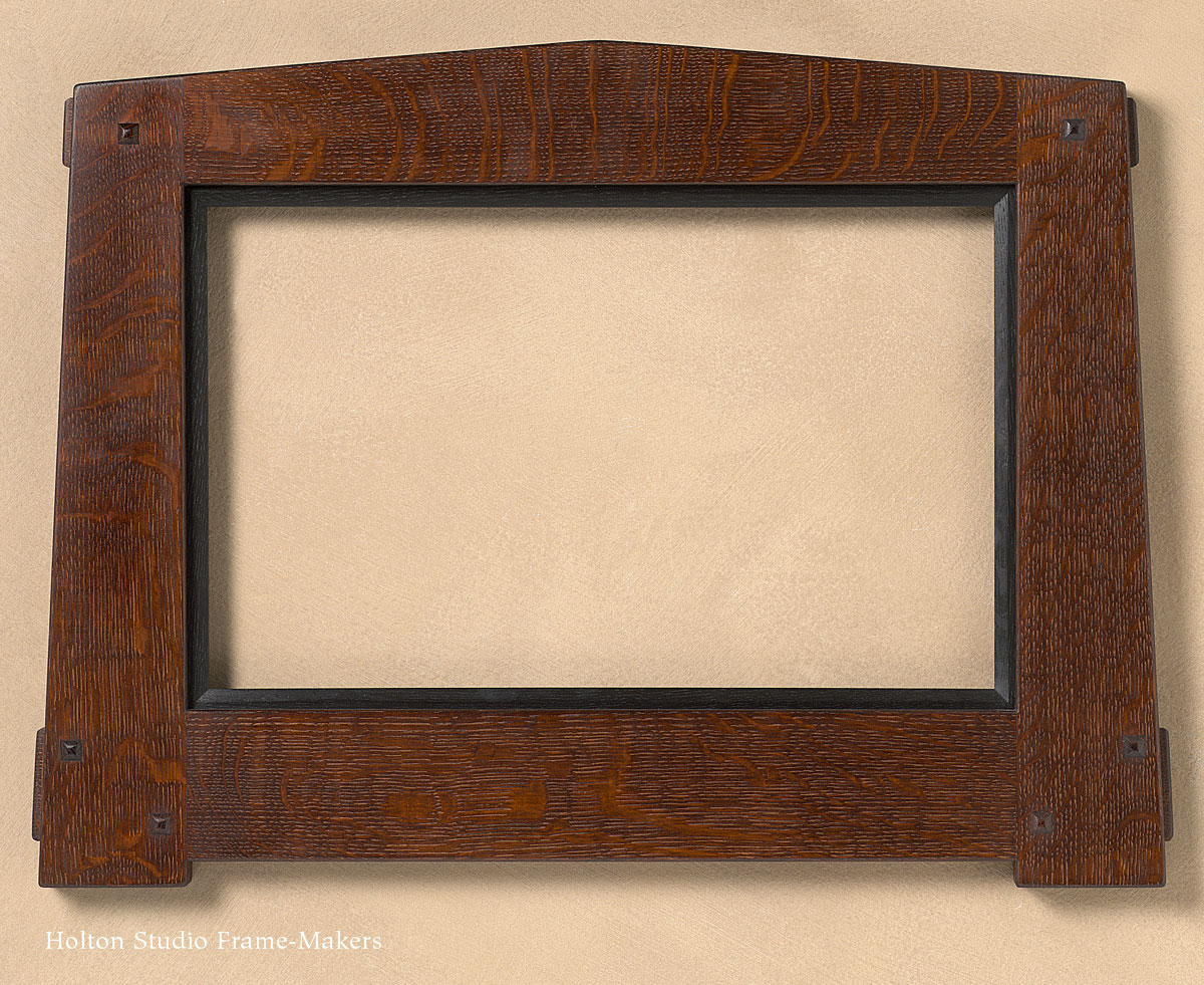 Bungalow Series frames feature mortise-and-tenon joinery and more architectural construction, with crowns, “mission,” cloud lift and peaked tops, tapered sides, etc. Often used for mirrors. View crown options… Possibilities are endless.
