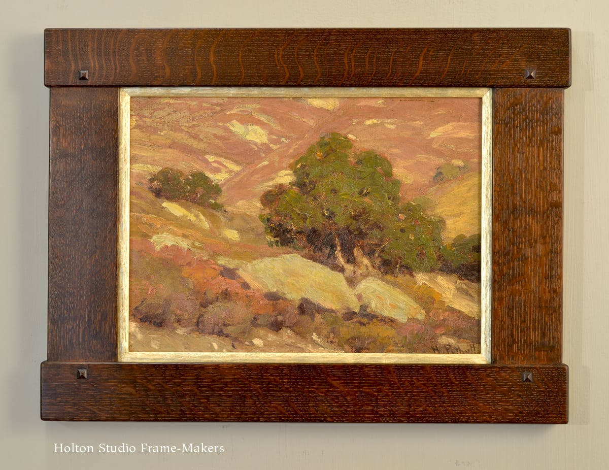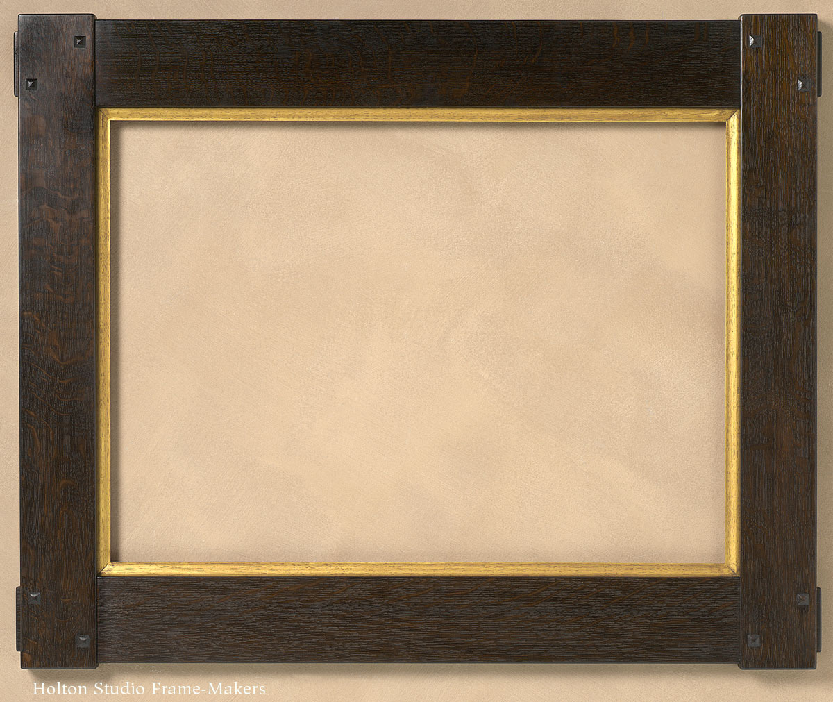 The Four-Square Basics have articulated joints, including, in the case of the No. 4001 designs, extended through-tenons. No. 4000 (the middle sample below at 2″—2-1/2″ profile width) has blind-tenons. In the medium and wide profile width categories the frames typically feature reveals at the face—a 1/8″ step that accentuates the joint. Your choice of corner treatment. A simple and classic Craftsman-style, very architectural frame that projects workmanship and integrity. For many, this is the quintessential Arts and Crafts picture frame.