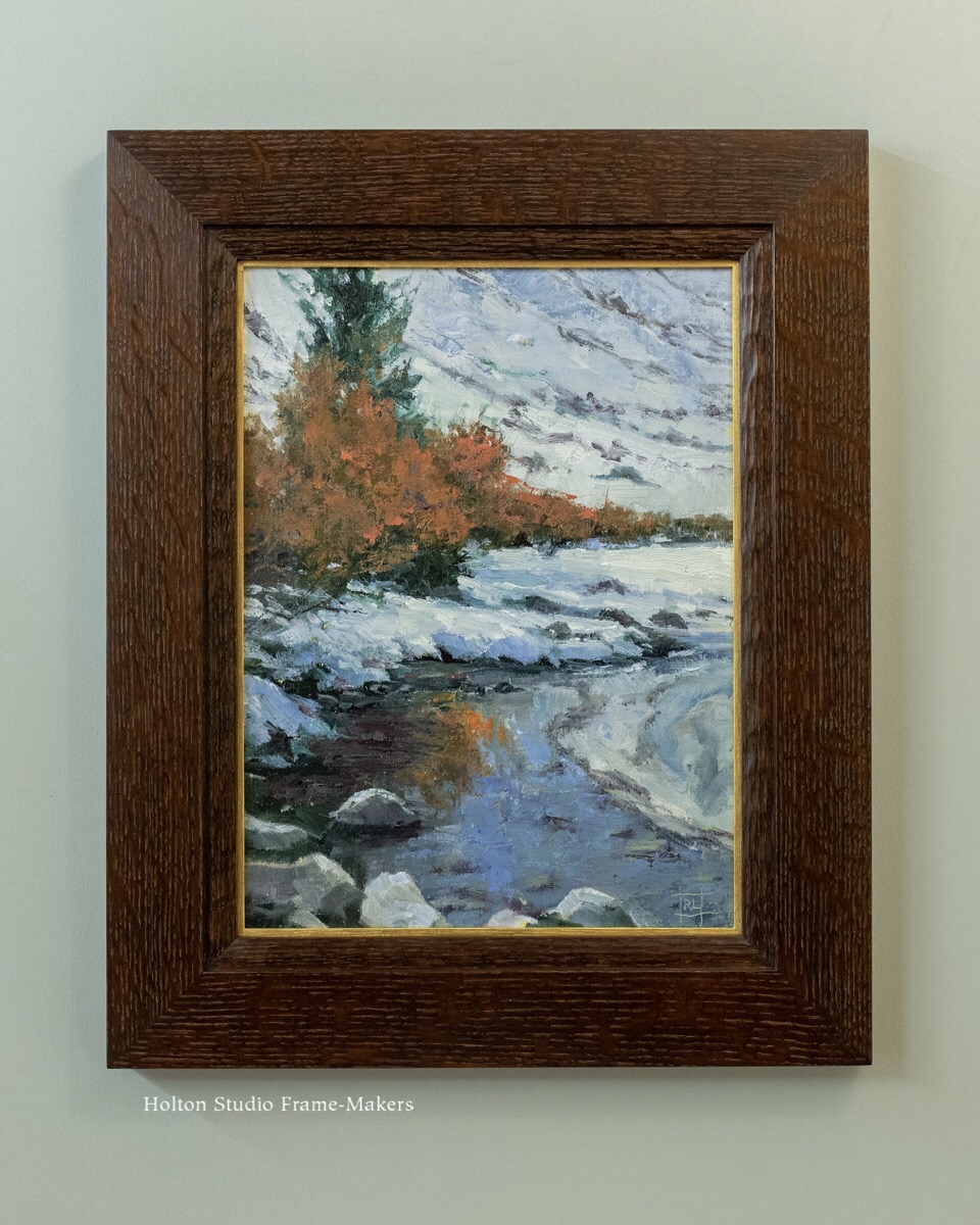 - Richard Lindenberg, “Convict Lake Thaw.” 2019. Oil, 16″ x 12″. $1,680 framed.