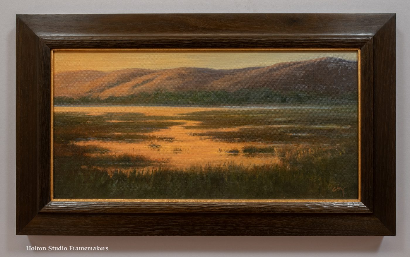 Oil on panel, 12″ x 24″. $3,900 framed.