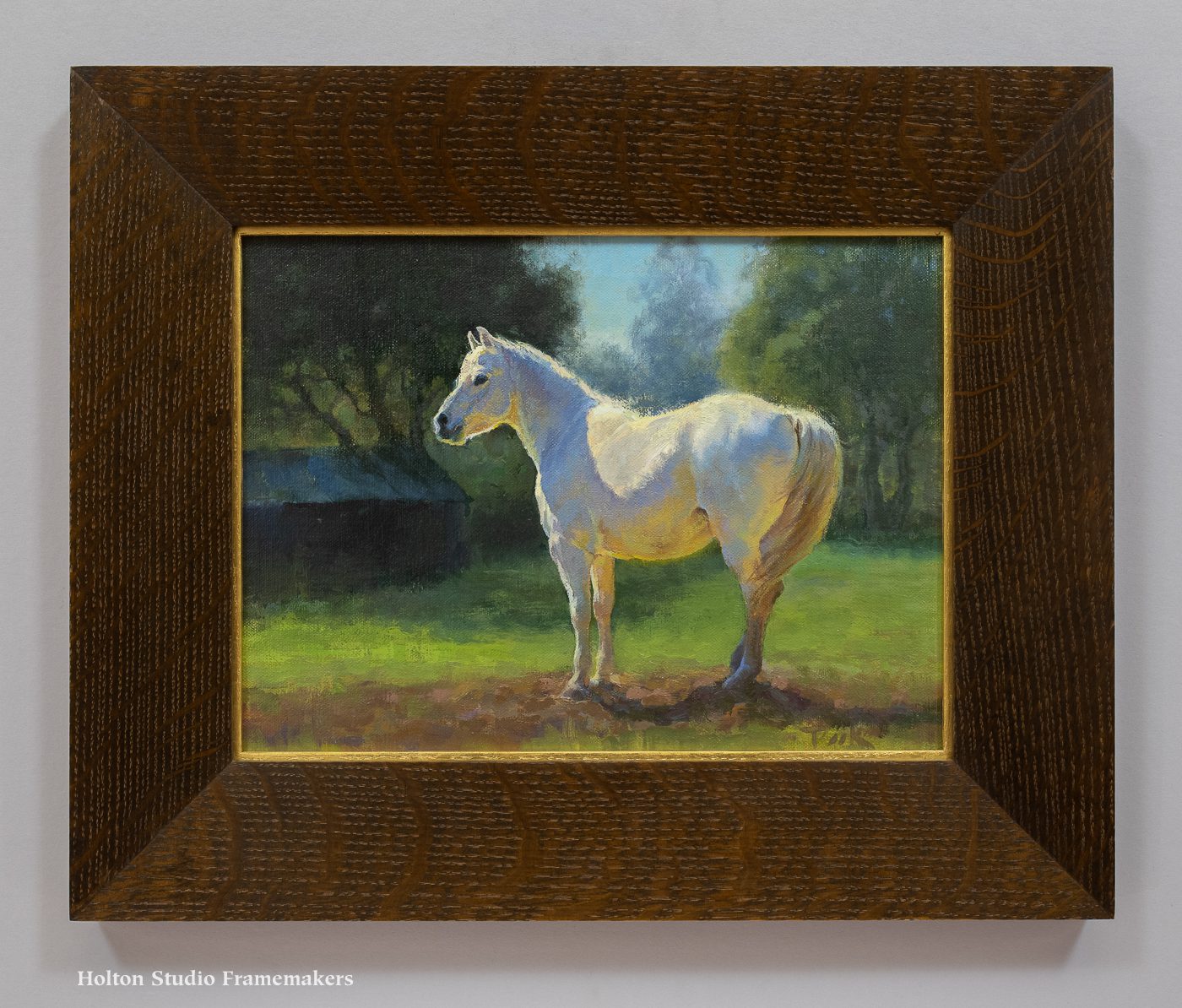 Oil on panel, 10″ x 12″. $2,700 framed.