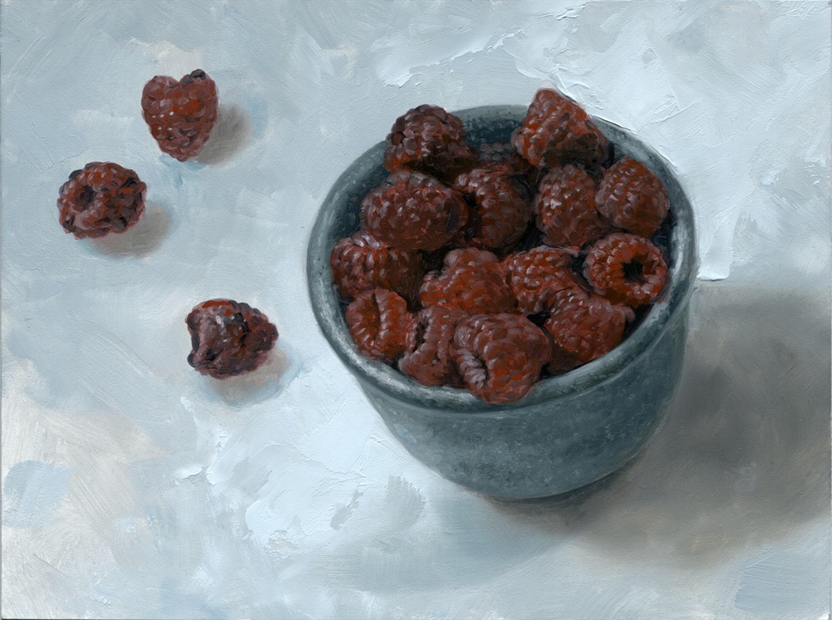 - Randy Gallegos, Raspberries Oil on panel, 6″ x 8″. $600 framed.